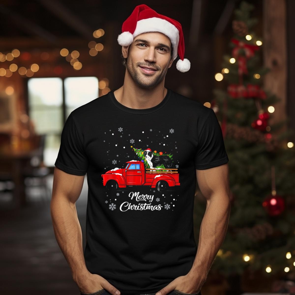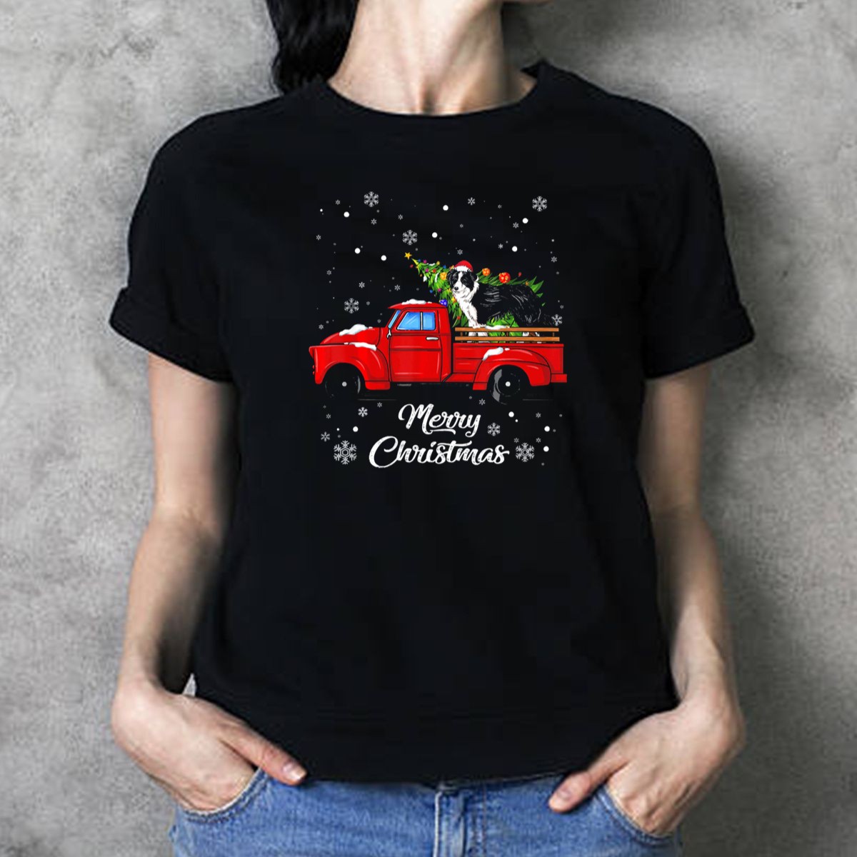Be the first to review “Merry Christmas Border Collie On Red Truck With Christmas Tree And Snowflakes T Shirt”