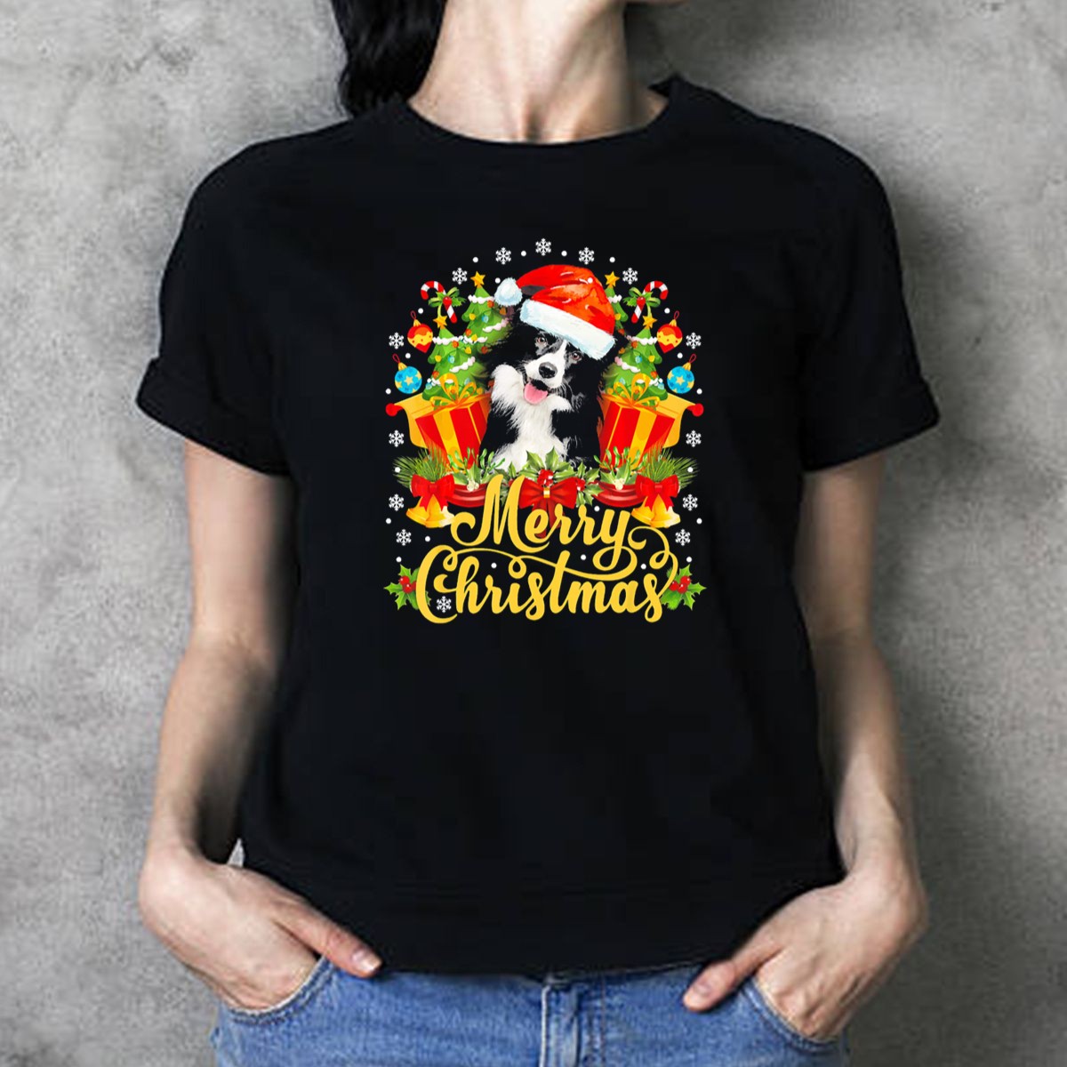 Celebrate the holiday season with our Merry Christmas Border Collie Santa Hat T-Shirt, perfect for dog lovers and festive enthusiasts alike! This fun and cheerful design showcases an adorable Border Collie donning a Santa hat, surrounded by gifts and candy canes, making it an ideal choice for casual wear, themed events, or daily festivities. Crafted for comfort and style, this shirt is a must-have for spreading holiday cheer and showcasing your love for furry friends.