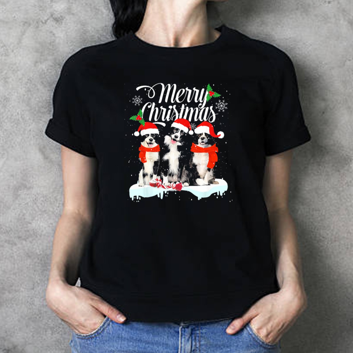 Celebrate the festive season with our Merry Christmas Border Collie Trio T-shirt, featuring adorable pups wearing Santa hats and surrounded by delicate snowflakes. Perfect for dog lovers and anyone looking to spread holiday cheer, this shirt is ideal for casual gatherings, themed events, or simply bringing some joy to your daily wear. Made with a fan-made design, printed in the USA, it’s a unique addition to your holiday wardrobe that showcases your love for these playful companions.