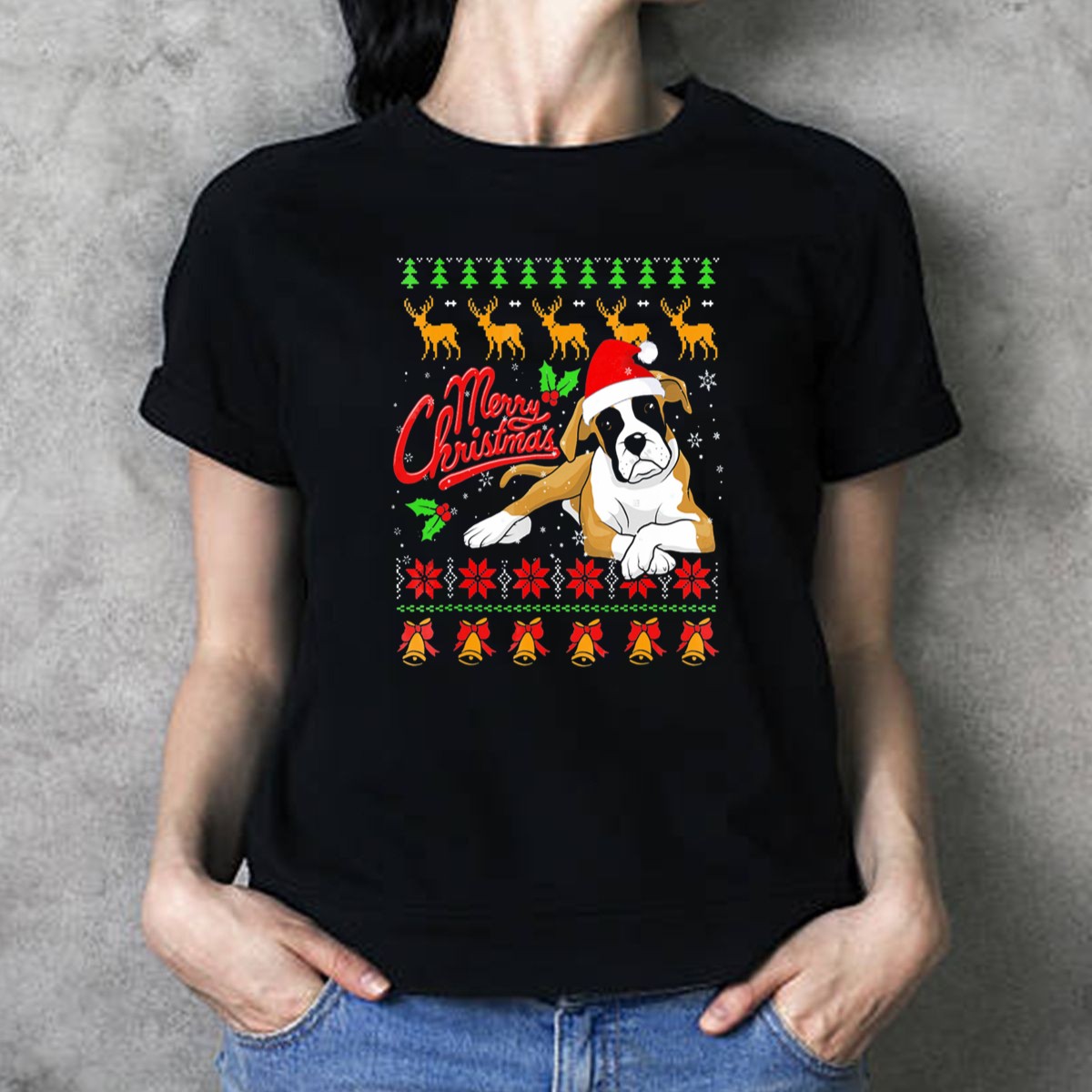 Celebrate the holiday season in style with our Merry Christmas Boxer Santa Hat Poinsettia Reindeer Snowflakes T-Shirt! This fan-made design is perfect for anyone who loves to spread festive cheer, making it an ideal choice for casual outings, themed events, or simply lounging at home. Crafted for comfort and durability, this shirt is a delightful addition to your all-season wardrobe, allowing you to showcase your holiday spirit wherever you go.