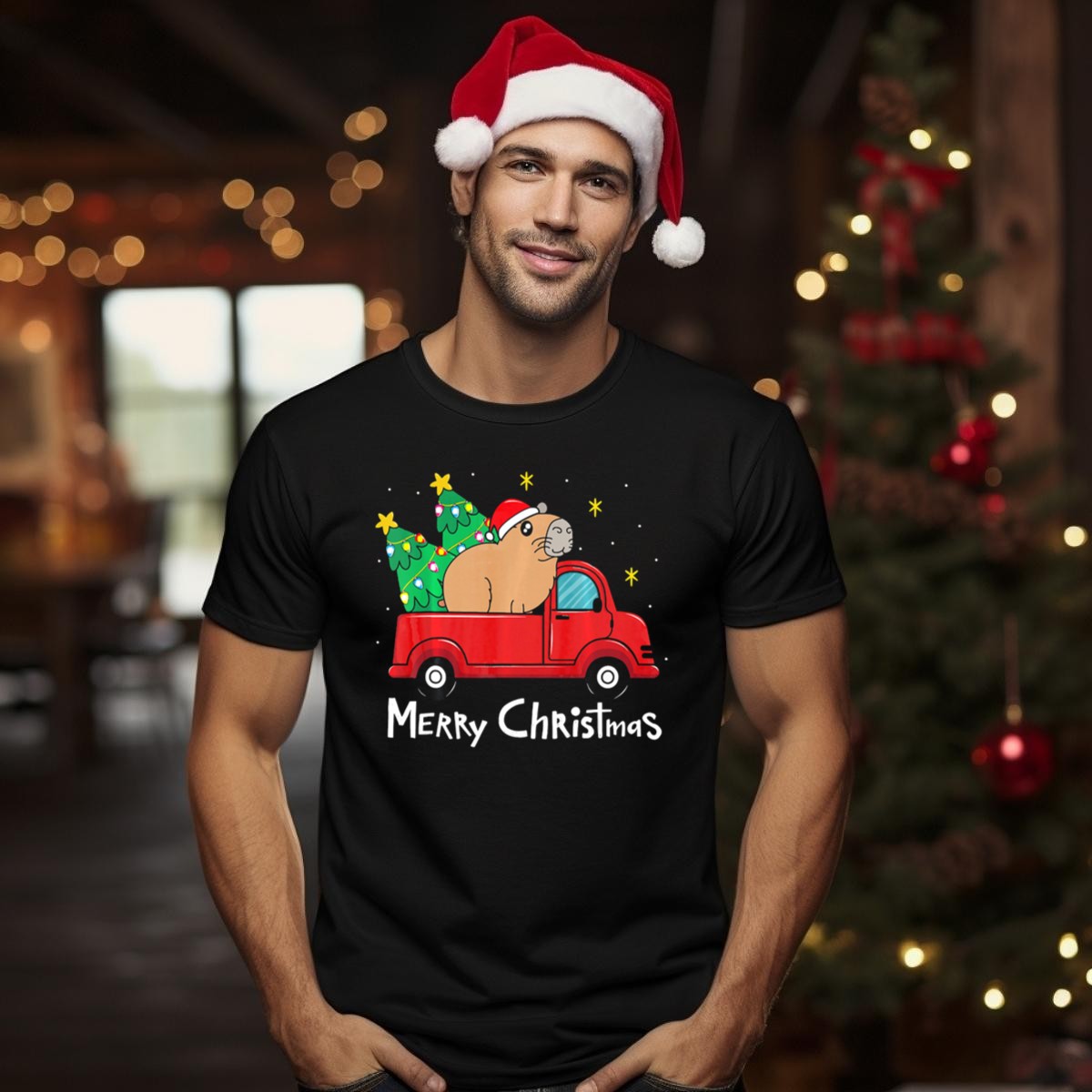 Be the first to review “Merry Christmas Capybara Santa Hat Red Truck Christmas Trees T Shirt”