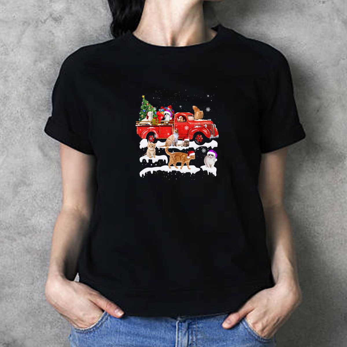 Merry Christmas Cats Riding Red Truck With Kittens And Christmas Tree X Mas T Shirt