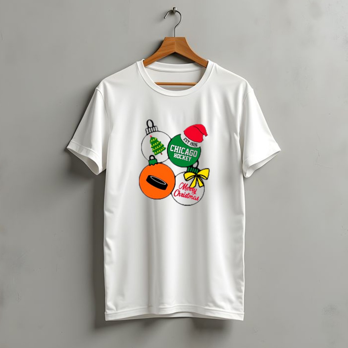 Celebrate the holiday season with our Merry Christmas Chicago Hockey Est 1926 Santa Hat Ornaments Hockey Puck Holiday T-Shirt! This festive tee is perfect for hockey fans who want to showcase their team spirit while embracing the joy of Christmas. Designed for casual wear, themed events, or just lounging around, this shirt is a must-have for any Chicago hockey enthusiast. Its unique fan-made design, proudly printed in the USA, adds a special touch to your holiday wardrobe.