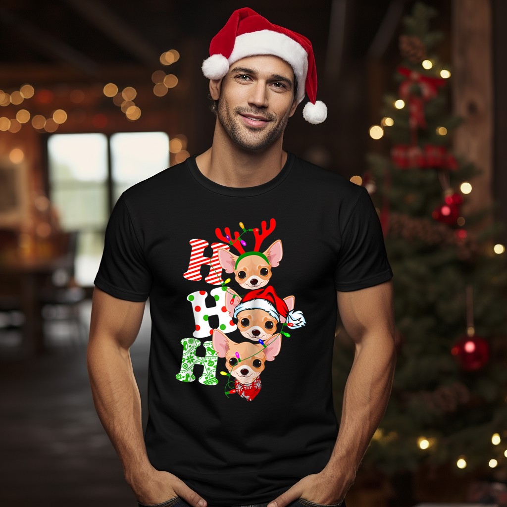 Celebrate the festive season with our Merry Christmas Chihuahua Ho Ho Ho Santa Reindeer Lights T-Shirt! Perfect for dog lovers and holiday enthusiasts alike, this fun and playful design captures the joy of Christmas through the eyes of a lovable Chihuahua. Ideal for casual gatherings, themed events, or simply spreading cheer during daily wear, this shirt is a must-have for anyone looking to embrace the holiday spirit in style. Plus, it’s proudly printed in the USA, making it a unique addition to your seasonal wardrobe!
