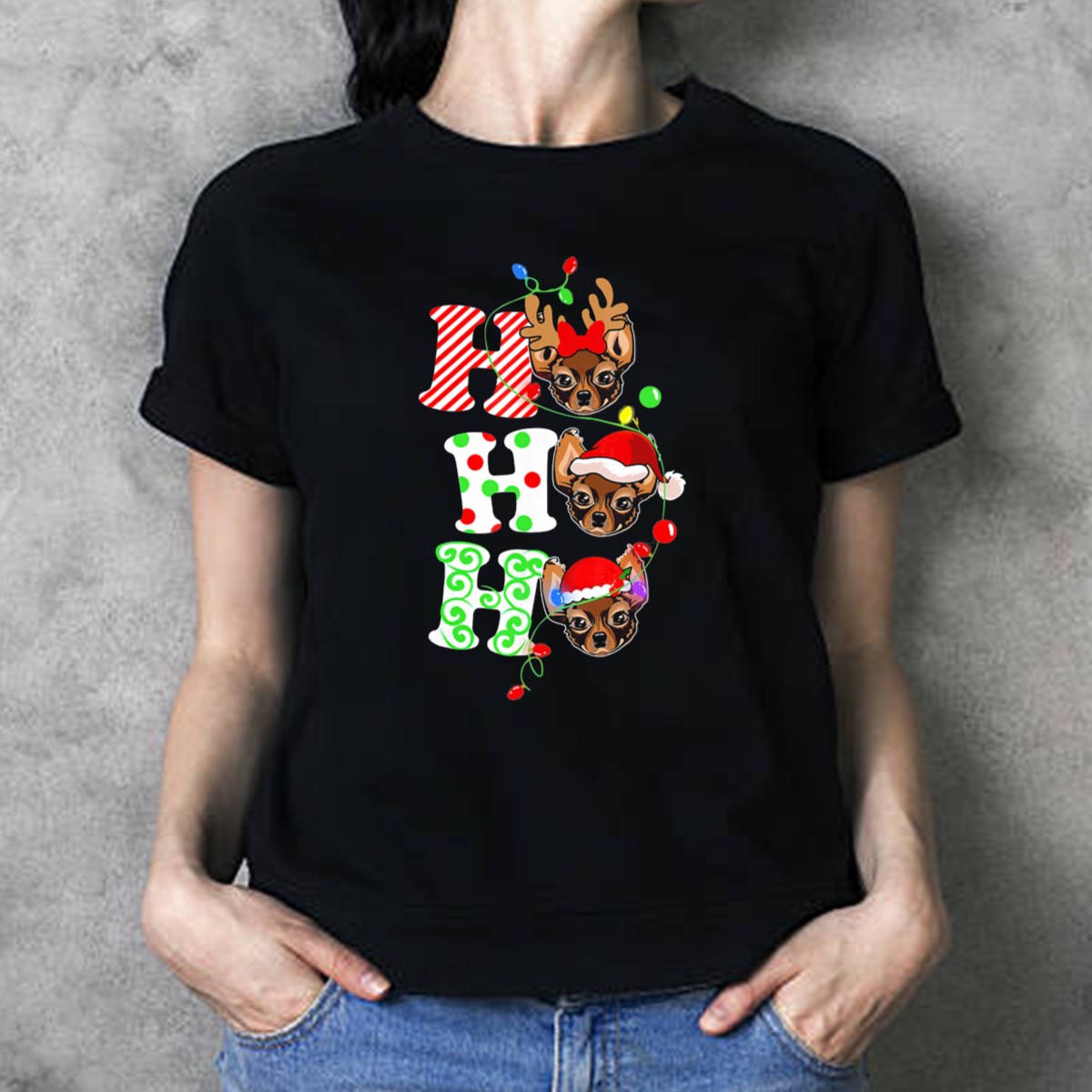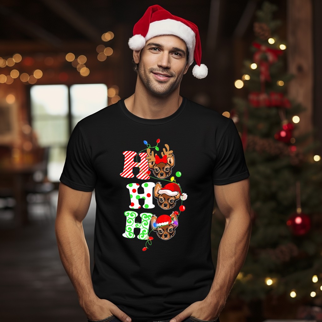 Spread the holiday cheer with our Merry Christmas Chihuahua Santa Ho Ho Holiday Lights T-Shirt! Perfect for dog lovers and festive spirits alike, this shirt features an adorable graphic that captures the essence of the season. Ideal for casual outings, themed events, or just lounging around during the holidays, this fan-made design is printed in the USA, making it a unique addition to your festive wardrobe.