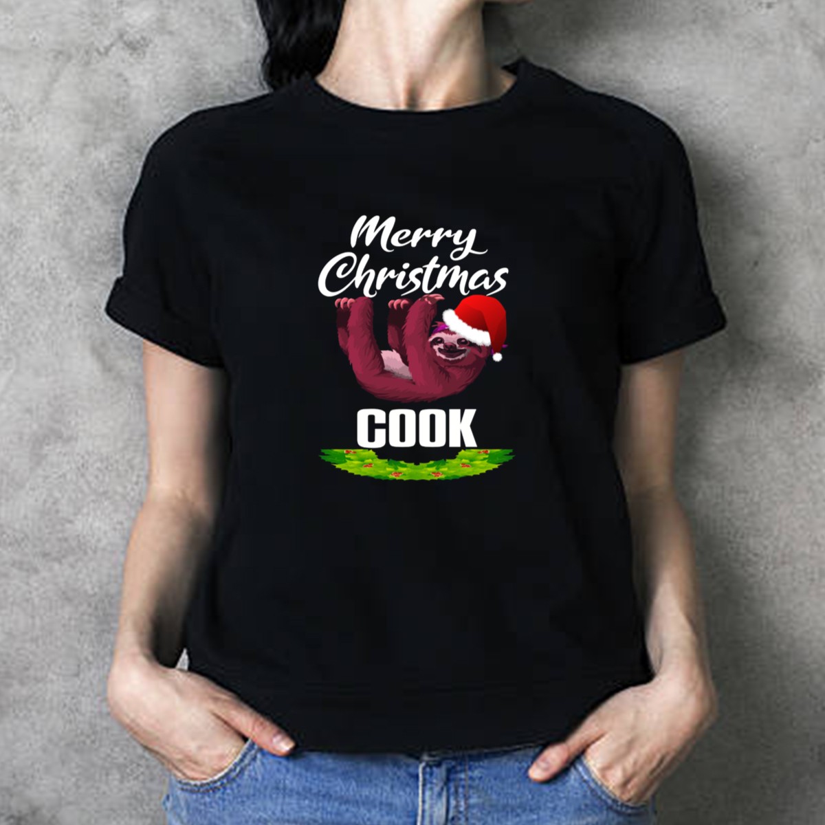 Celebrate the holiday season in style with our Merry Christmas Cook Sloth T-shirt! This fun and festive design features a charming sloth in a Santa hat, surrounded by a holly wreath, making it the perfect choice for holiday gatherings, themed events, or just lounging around at home. Crafted for comfort and durability, this shirt is a must-have for anyone looking to spread some cheer during the most wonderful time of the year!