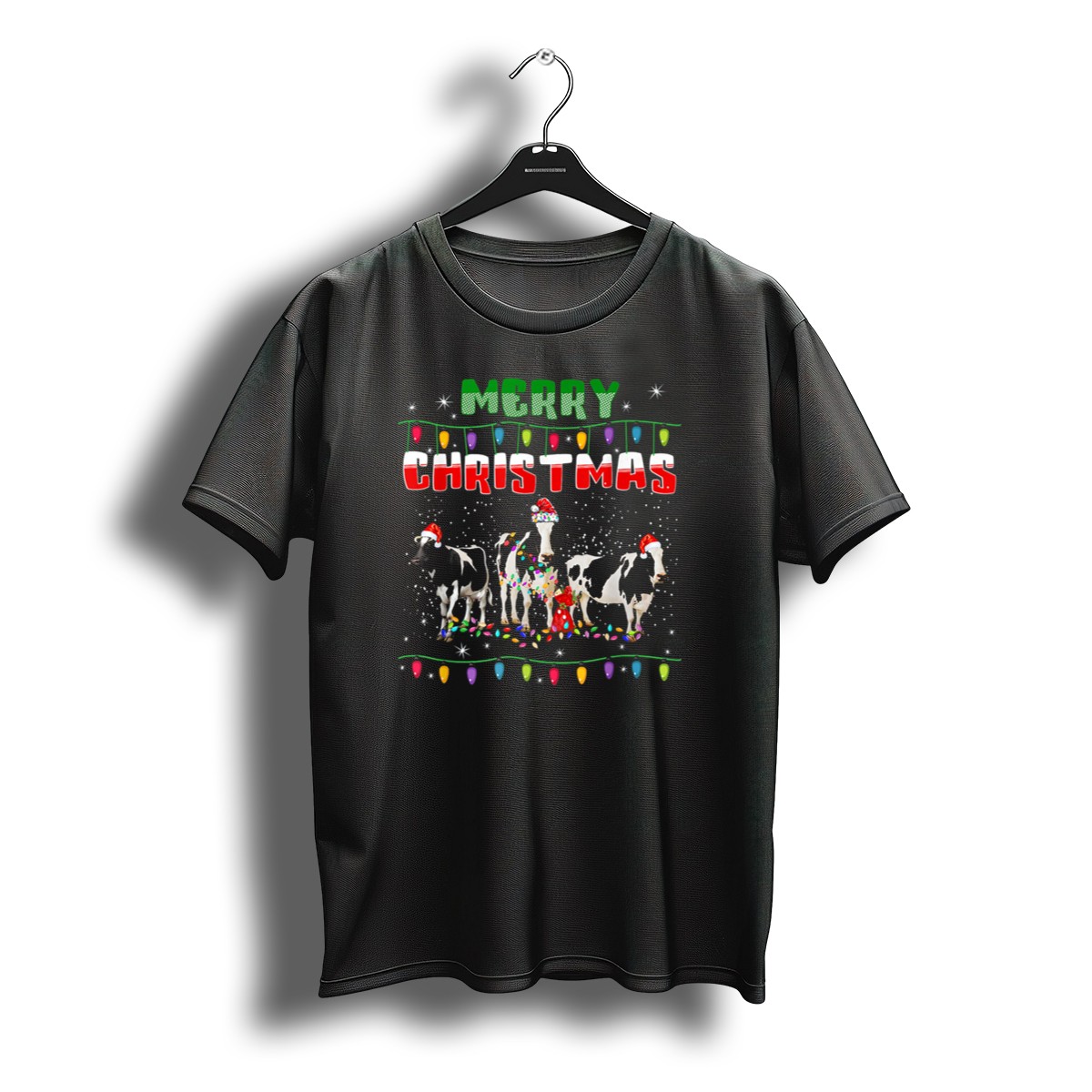 Celebrate the festive season with our Merry Christmas Cows With Holiday Lights And Santa Hats T-Shirt! Perfect for animal lovers and holiday enthusiasts alike, this fun and cheerful design brings a light-hearted touch to your casual wardrobe. Whether you’re attending a holiday gathering, a themed event, or simply enjoying daily wear, this shirt is sure to spread joy and laughter wherever you go. Made in the USA, its unique fan-made design showcases your love for the holidays in style.