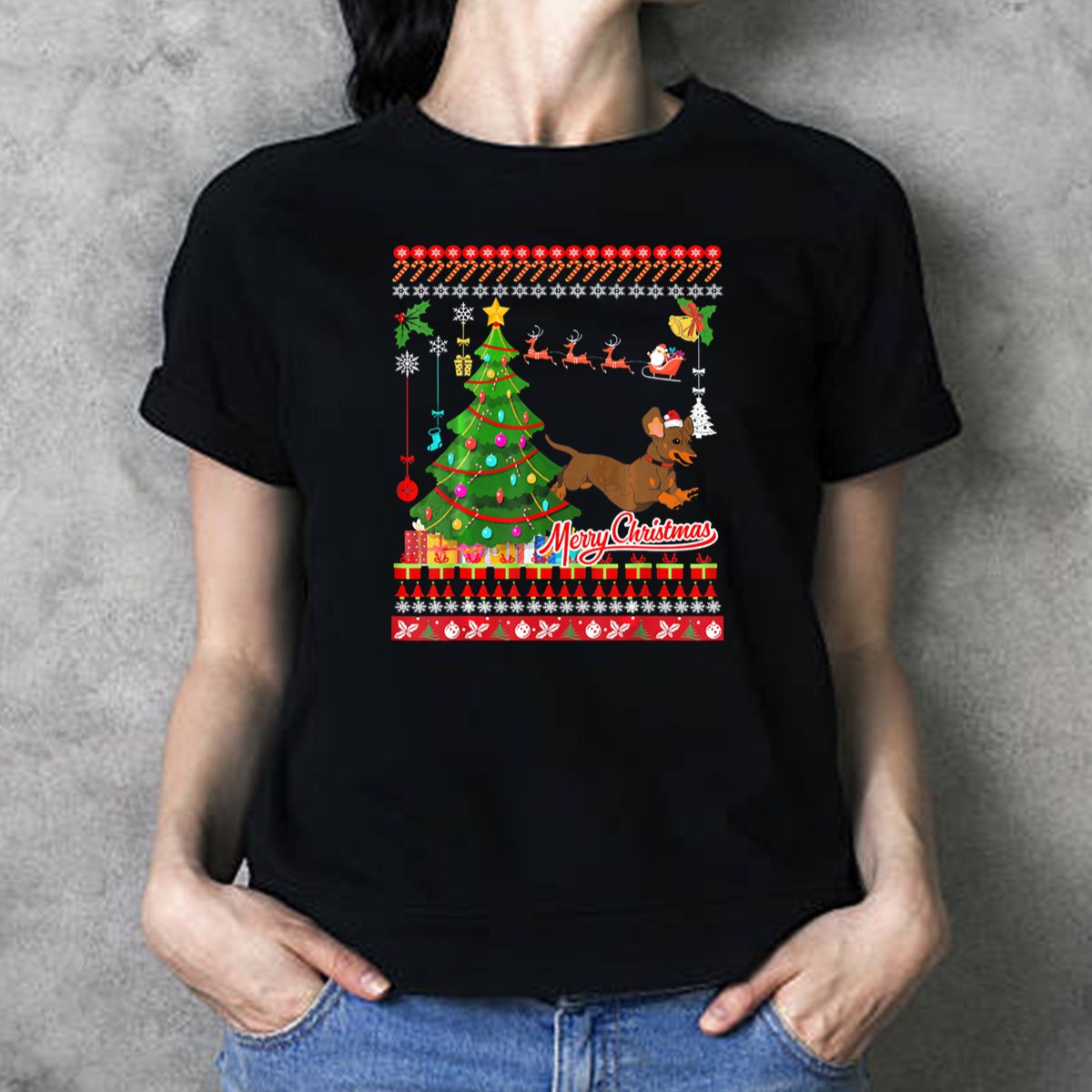 Celebrate the festive season with our Merry Christmas Dachshund Dog Uglydac Holiday T-Shirt, perfect for dog lovers and those who enjoy a touch of humor in their holiday attire. This fan-made design showcases a whimsical dachshund ready to spread cheer, making it an ideal choice for casual wear, themed events, or simply lounging around during the holidays. Crafted for comfort and style, this shirt is sure to become a favorite in your all-season wardrobe.