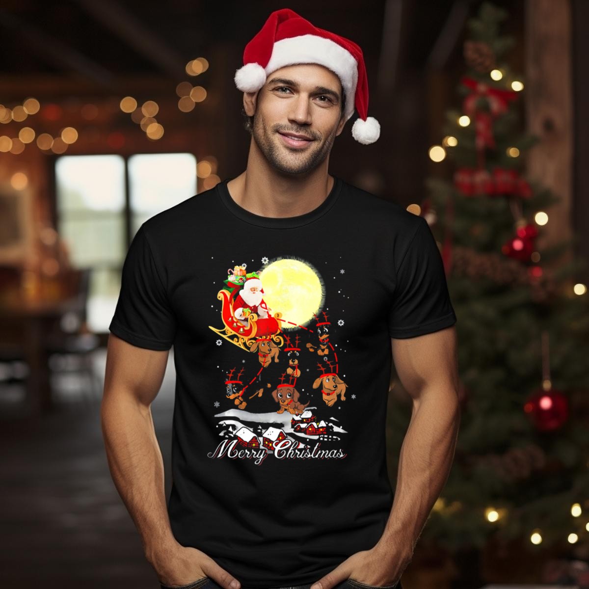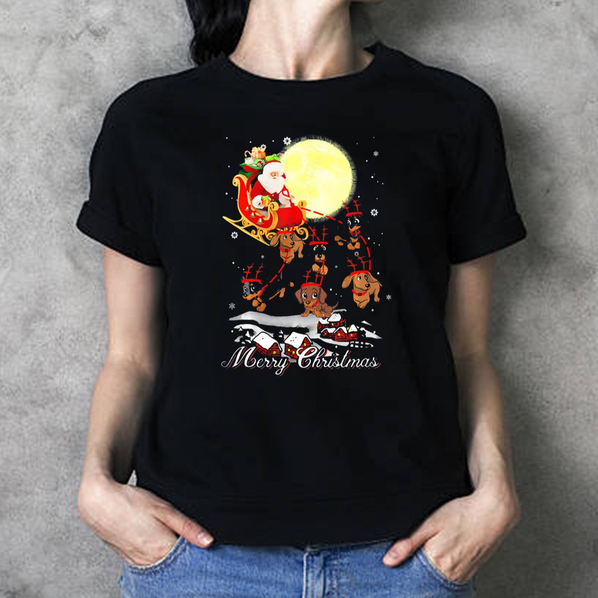 Celebrate the holiday season in style with our Merry Christmas Dachshund Reindeer Santa Sleigh T-Shirt! This delightful tee showcases a whimsical design perfect for dog lovers and festive gatherings alike. Crafted for comfort and versatility, it’s the ideal choice for casual wear, themed events, or simply spreading holiday cheer during your daily activities. Made with love right here in the USA, this fan-made design is sure to bring a smile to everyone around you!
