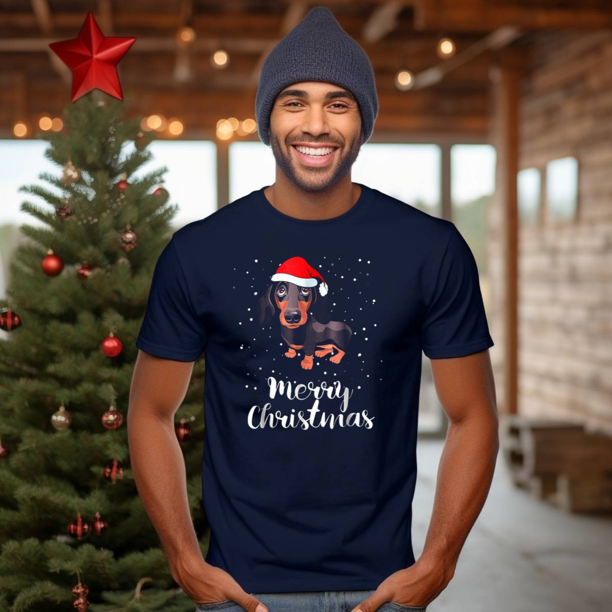 Celebrate the holiday season in style with our Merry Christmas Dachshund Santa Hat Matching Family Group T-Shirt! Perfect for dog lovers and families alike, this fun and festive shirt is designed to bring joy to your Christmas gatherings, themed events, or casual wear. Its unique fan-made design features an adorable dachshund in a Santa hat, making it a delightful addition to your holiday wardrobe. Made in the USA, this shirt is all about spreading cheer while keeping you comfortable.