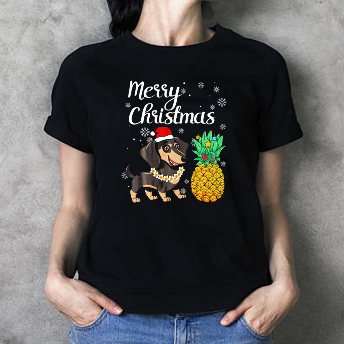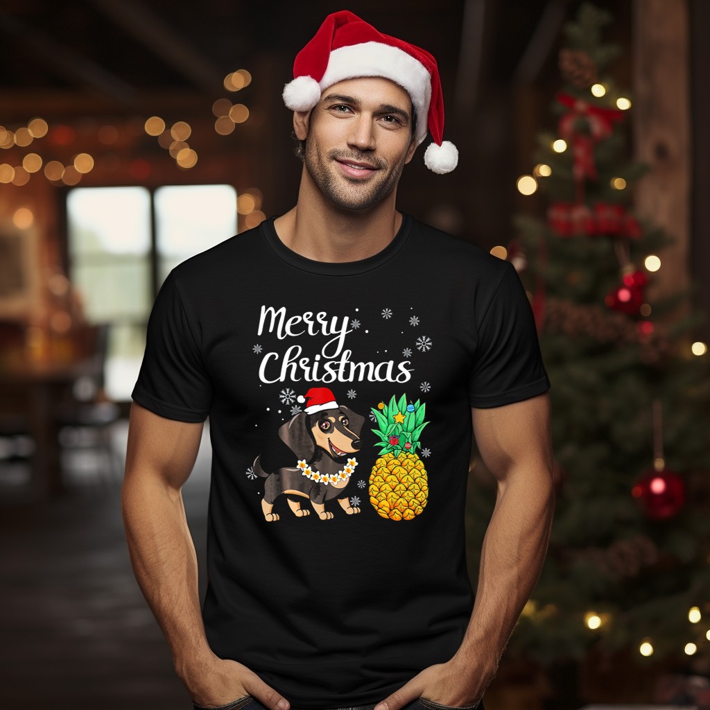 Celebrate the festive season in style with our Merry Christmas Dachshund Santa Hat Pineapple Snowflakes T-Shirt! Perfect for dog lovers and holiday enthusiasts alike, this fun and quirky design brings a playful twist to your Christmas wardrobe. Whether you’re attending a casual gathering, themed events, or just enjoying a cozy day at home, this shirt is sure to make you stand out while spreading holiday cheer. Made with a fan-made design and printed in the USA, it’s a unique addition to your all-season collection.