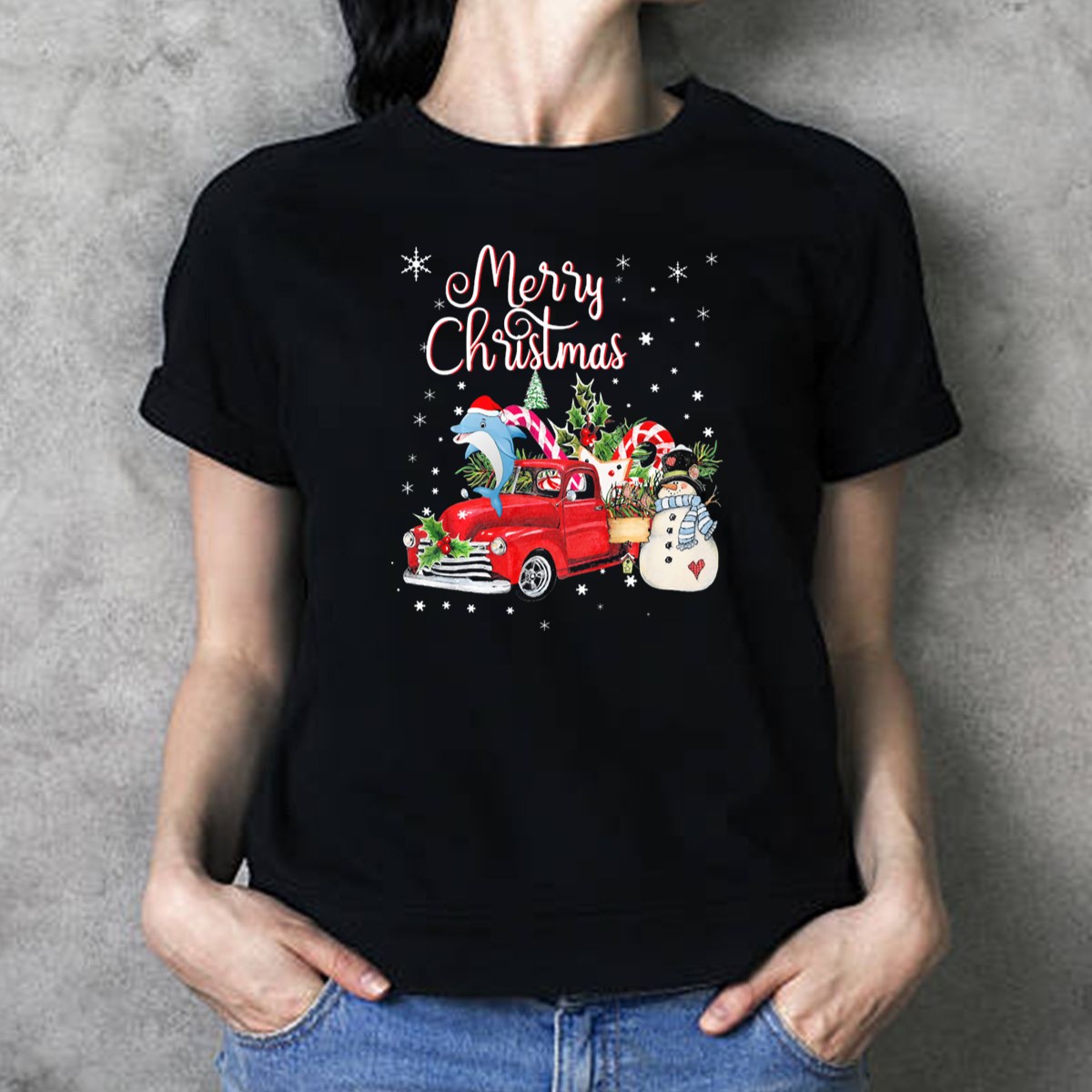 Celebrate the festive season with our Merry Christmas Dolphin in Red Truck with Snowman and Candy Canes T-Shirt! This playful and vibrant design is perfect for dolphin lovers and holiday enthusiasts alike, making it an ideal choice for casual wear, themed events, or simply spreading holiday cheer in your everyday life. Crafted with care and printed in the USA, this fan-made shirt combines comfort with a fun, eye-catching design that will surely make you stand out during the holiday festivities.