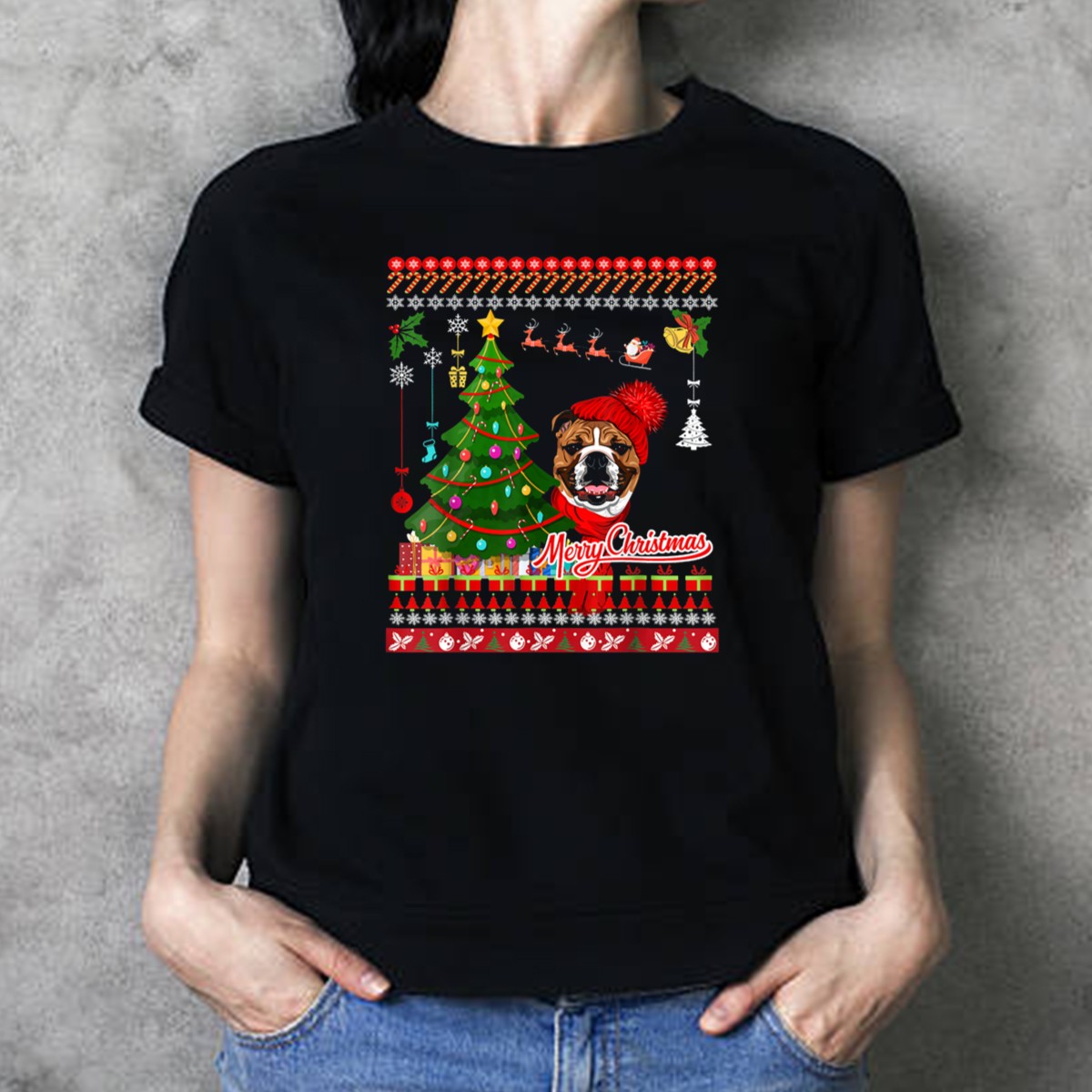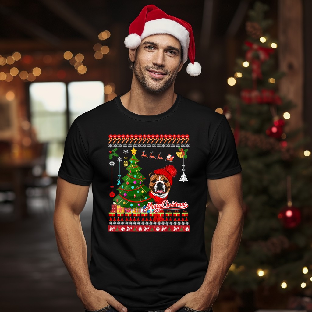 Get into the festive spirit with our Merry Christmas English Bulldog Ugly Sweater Santa Tree T-Shirt! Perfect for dog lovers and holiday enthusiasts alike, this fun and quirky design brings a smile to every gathering. Whether you’re attending a themed party, enjoying a casual day out, or simply celebrating the season at home, this shirt offers a unique blend of humor and holiday cheer. Made with care in the USA, it’s a must-have for anyone looking to showcase their love for English Bulldogs and the joy of Christmas!