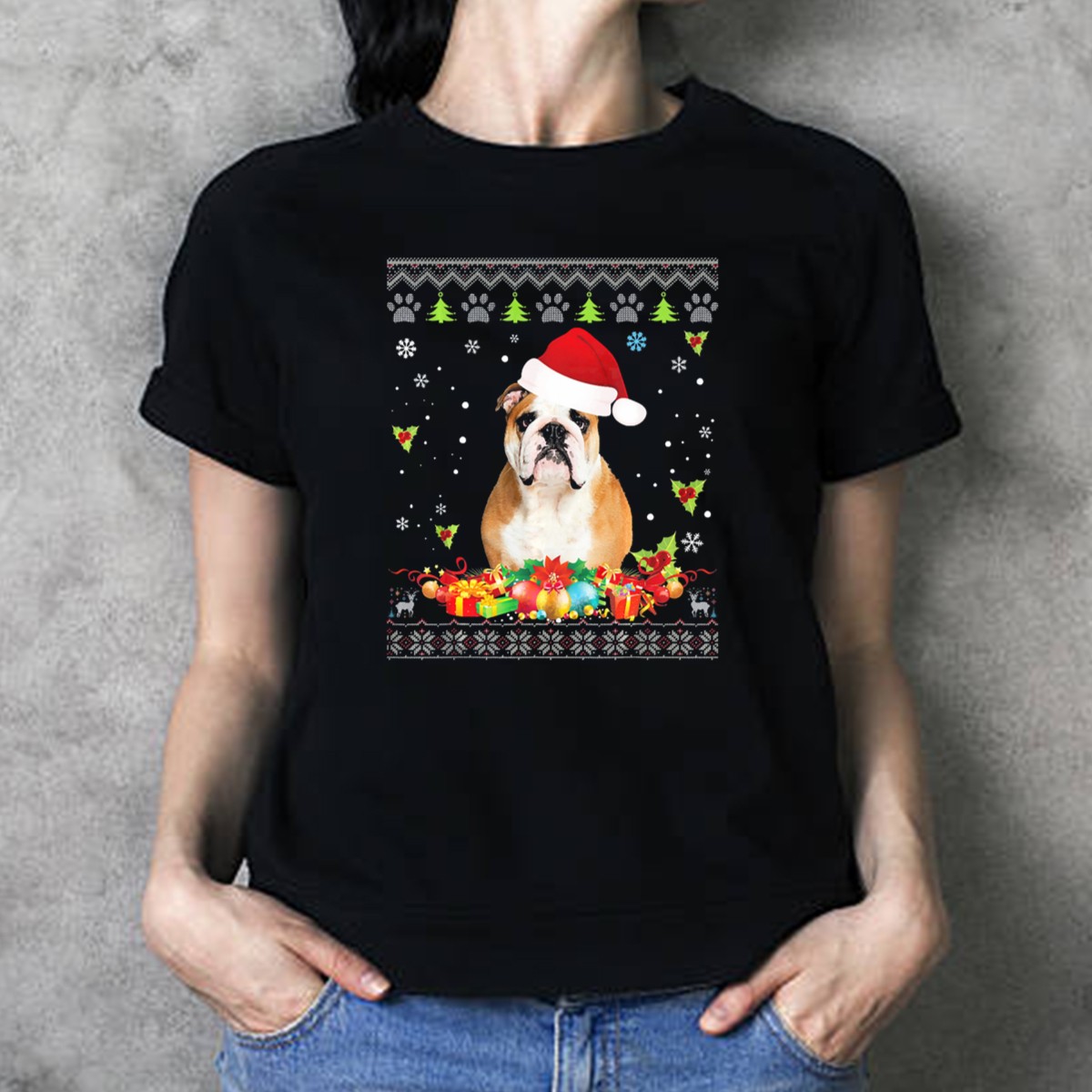 Celebrate the holiday season in style with our Merry Christmas English Bulldog With Santa Hat And Festive T-Shirt, perfect for dog lovers and festive spirits alike! This unique fan-made design captures the cheerful essence of Christmas, featuring an adorable English Bulldog donned in a Santa hat. Ideal for casual wear, themed events, or simply spreading holiday cheer during daily outings, this shirt is a must-have addition to your festive wardrobe.