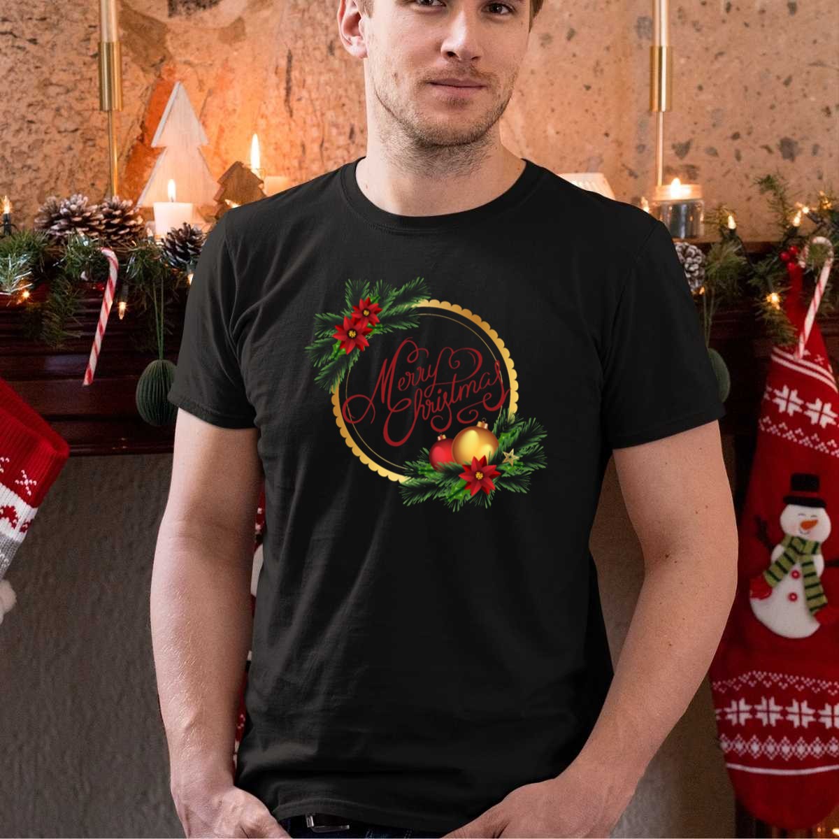 Be the first to review “Merry Christmas Festive Wreath With Ornaments And Poinsettias T Shirt”