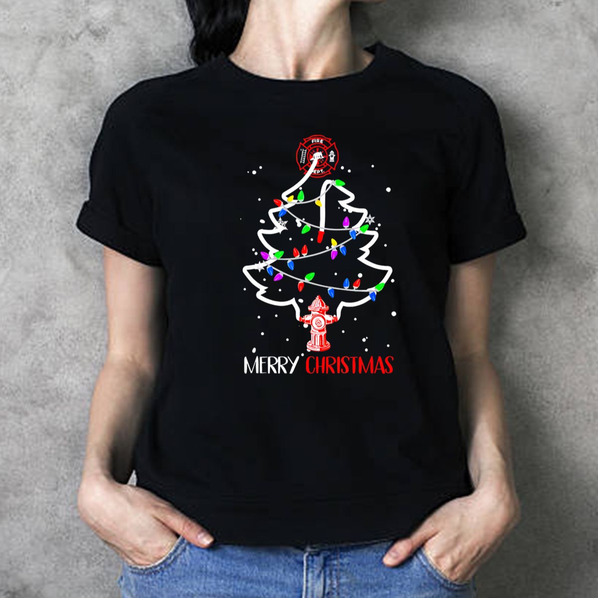 Celebrate the holiday season with our Merry Christmas Fire Department T-shirt, featuring a unique design that showcases a festive fire hose intertwined with a pine tree adorned with lights and a classic fire hydrant. This shirt is perfect for firefighters, fire department enthusiasts, and anyone looking to spread holiday cheer. Ideal for casual wear, themed events, or daily outings, this fan-made design is proudly printed in the USA, making it a special addition to your wardrobe this Christmas.