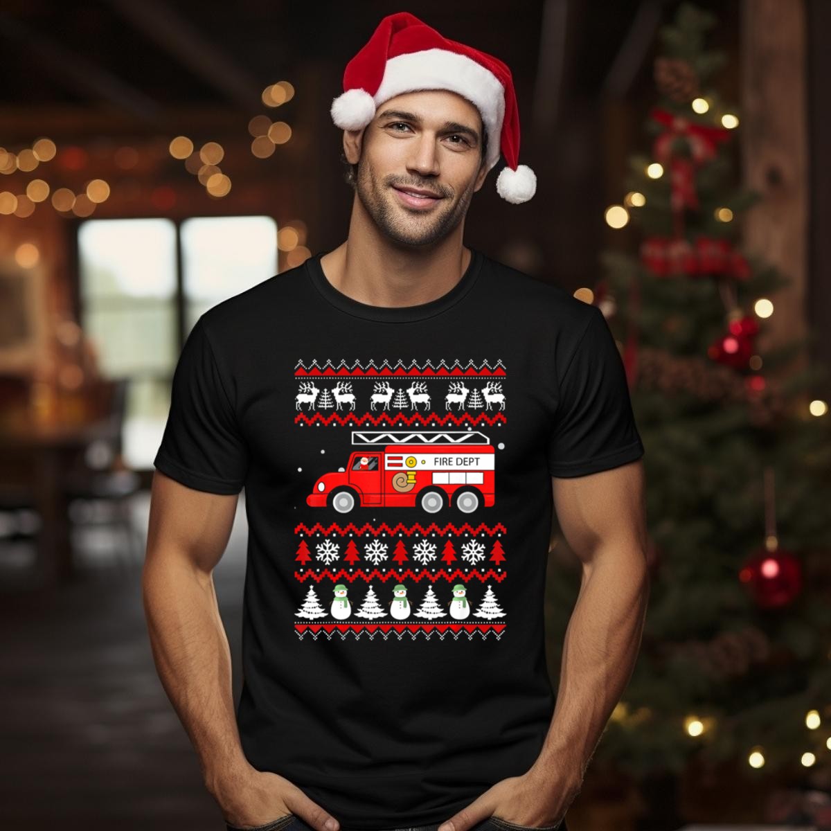 Celebrate the holiday season with our Merry Christmas Fire Department Truck Snowflakes Reindeer Trees T-Shirt, perfect for firefighters, their families, or anyone who loves the festive spirit! This fan-made design showcases a charming blend of Christmas elements, making it an ideal choice for casual wear, themed events, or daily outings during the holiday season. Printed in the USA, this shirt combines comfort and style, making it a unique addition to your winter wardrobe.