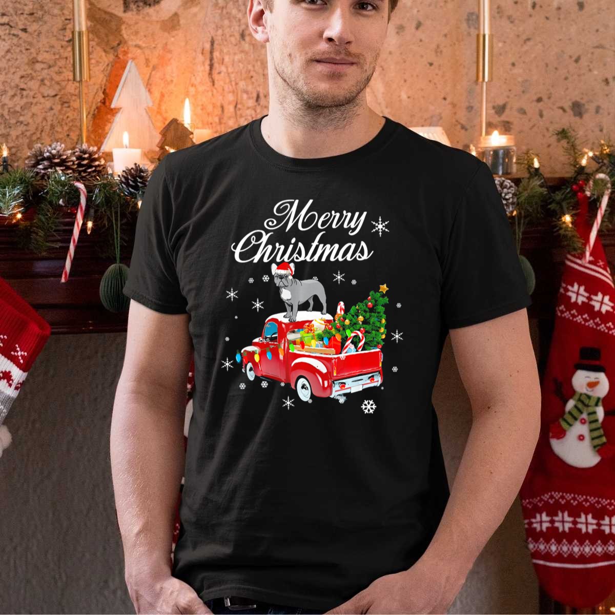 Be the first to review “Merry Christmas French Bulldog Rides Red Truck With Gifts And Snowflakes T Shirt”