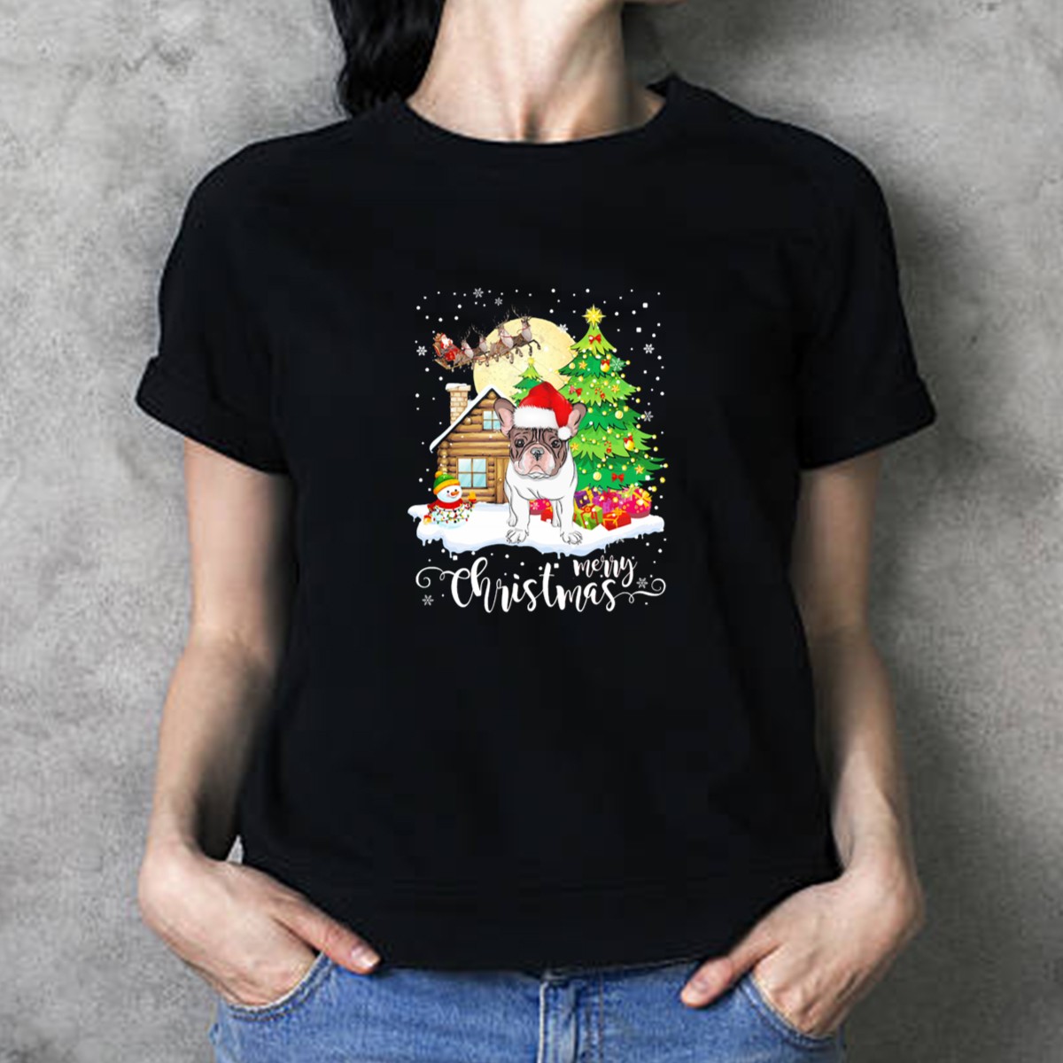 Celebrate the holiday season in style with our Merry Christmas French Bulldog Santa Hat T-shirt! This playful and festive design features an adorable French Bulldog donning a Santa hat, surrounded by a cheerful Christmas tree, snowman, and sleigh. Perfect for dog lovers and holiday enthusiasts alike, this shirt is ideal for casual wear, themed events, or cozy family gatherings. Made with care in the USA, it brings a unique touch to your festive wardrobe.