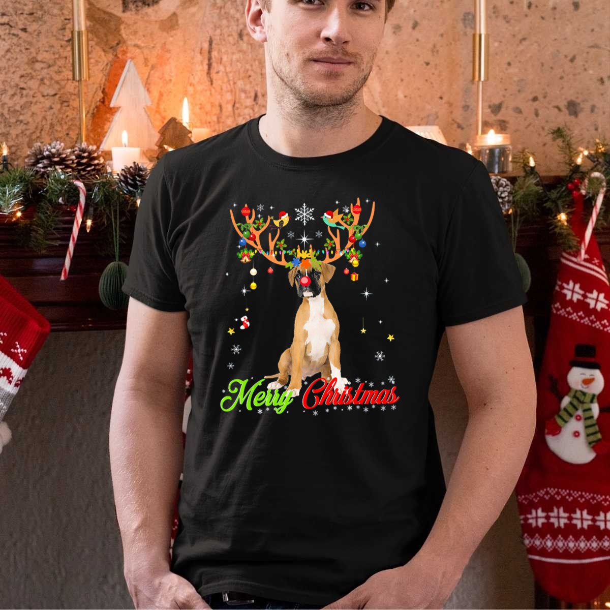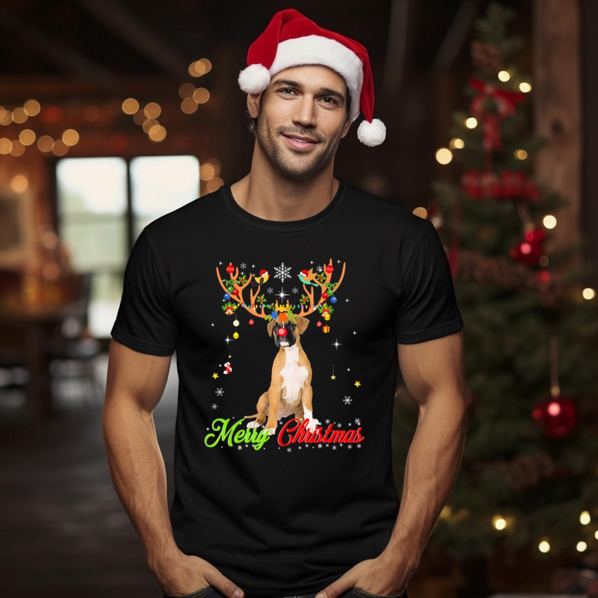 Celebrate the holiday season with our Merry Christmas Funny Boxer Dog With Antlers T-Shirt! This playful design is perfect for dog lovers and anyone who enjoys a good laugh during festive gatherings. Whether you’re attending a holiday party, lounging at home, or out running errands, this shirt will keep you feeling comfortable and stylish. Made with love and printed in the USA, it’s a unique addition to your casual wardrobe that spreads joy wherever you go!