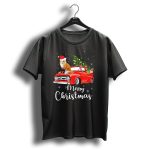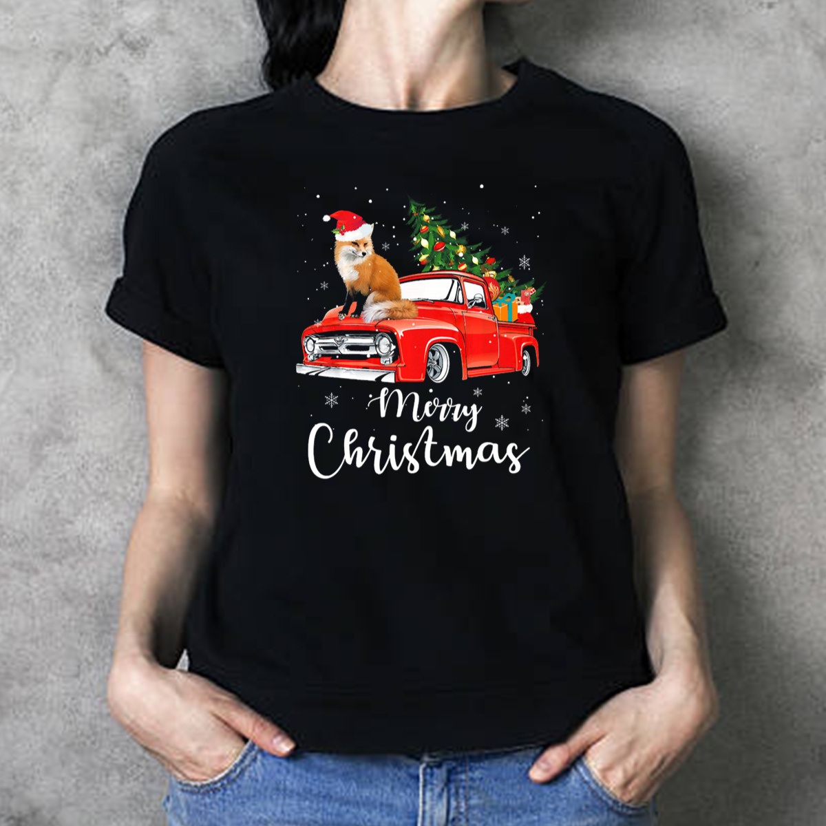 Merry Christmas Funny Fox On Red Truck With Christmas Tree T-Shirt