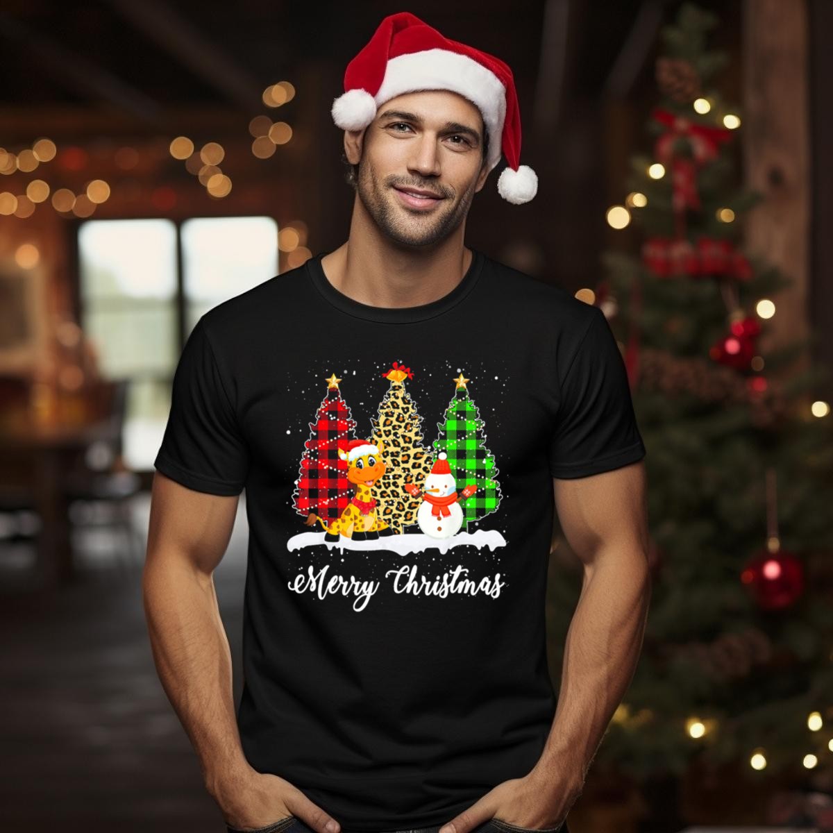 Be the first to review “Merry Christmas Funny Giraffe Leopard Buffalo Plaid Trees T-Shirt”
