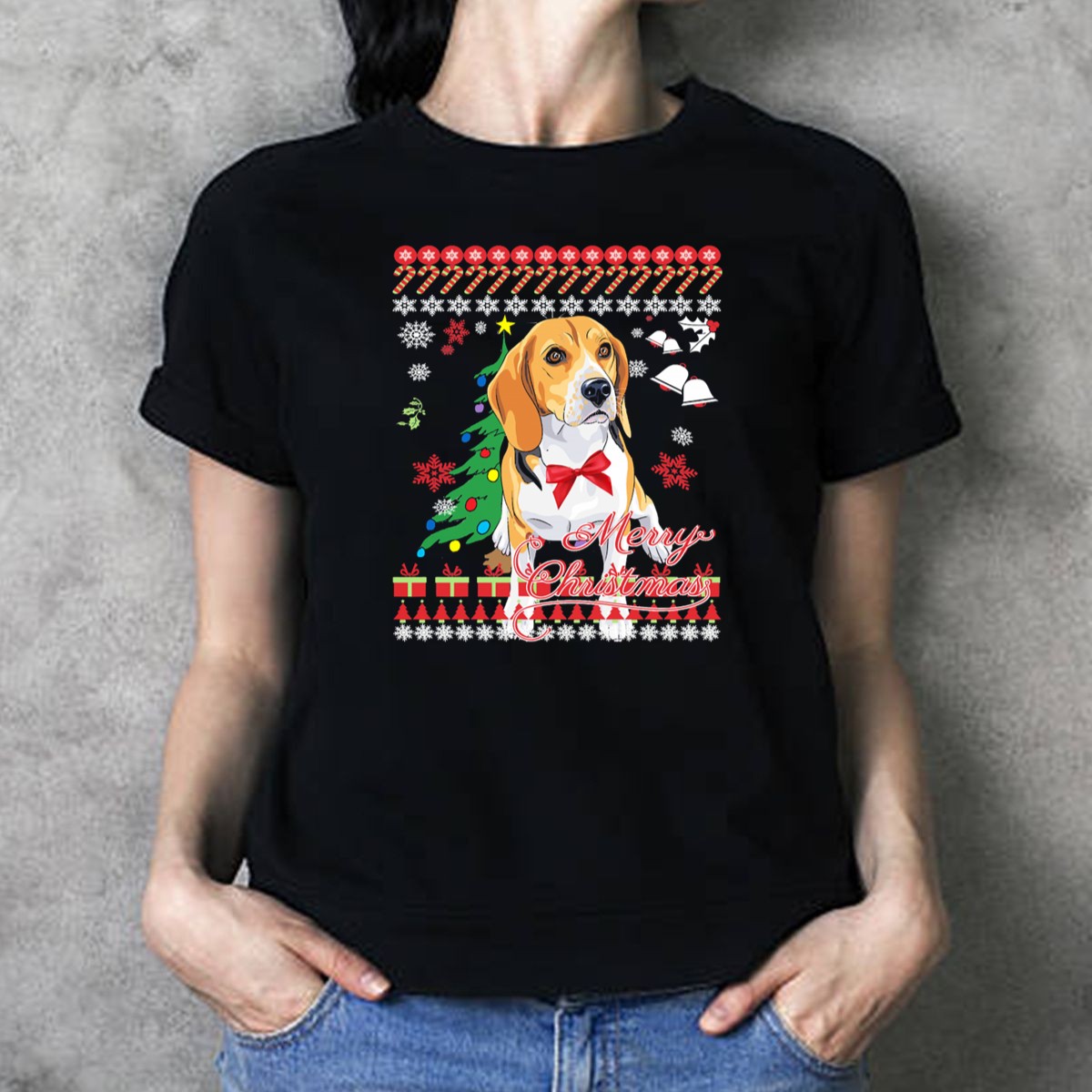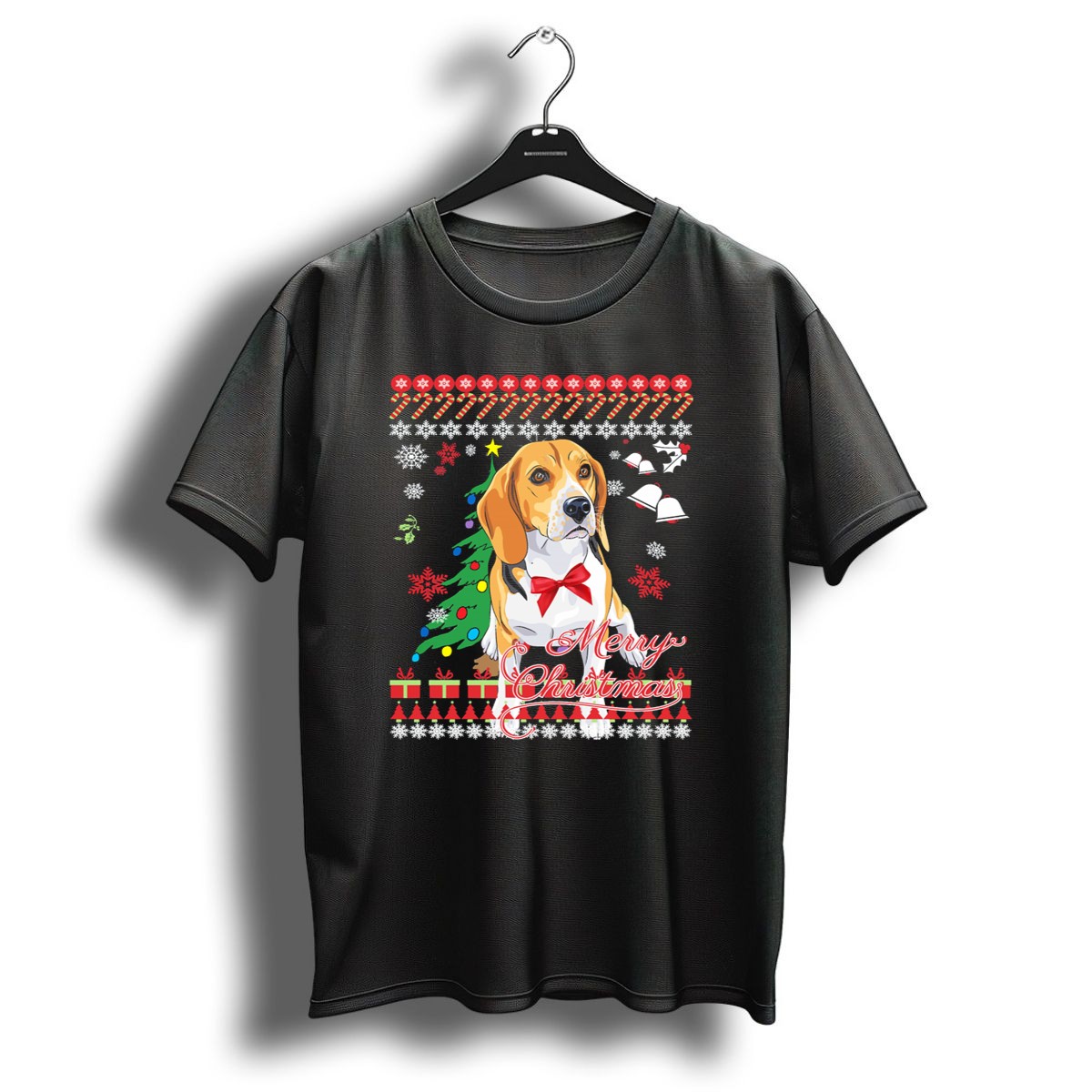 Celebrate the holiday season with a twist of humor in our Merry Christmas Funny Ugly Sweater Beagle With Bells And Snowflakes T-Shirt! Perfect for dog lovers and anyone looking to spread some festive cheer, this shirt is ideal for casual wear, themed events, or simply lounging around during the holidays. With its unique fan-made design printed in the USA, it’s sure to bring a smile to everyone you meet.