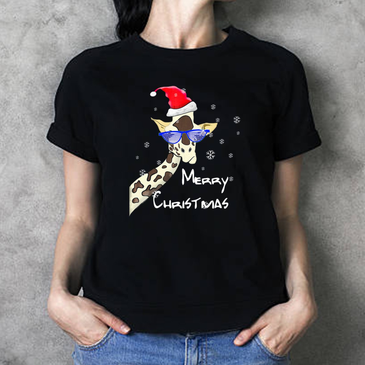 Be the first to review “Merry Christmas Giraffe With Santa Hat And Blue Sunglasses T-Shirt”