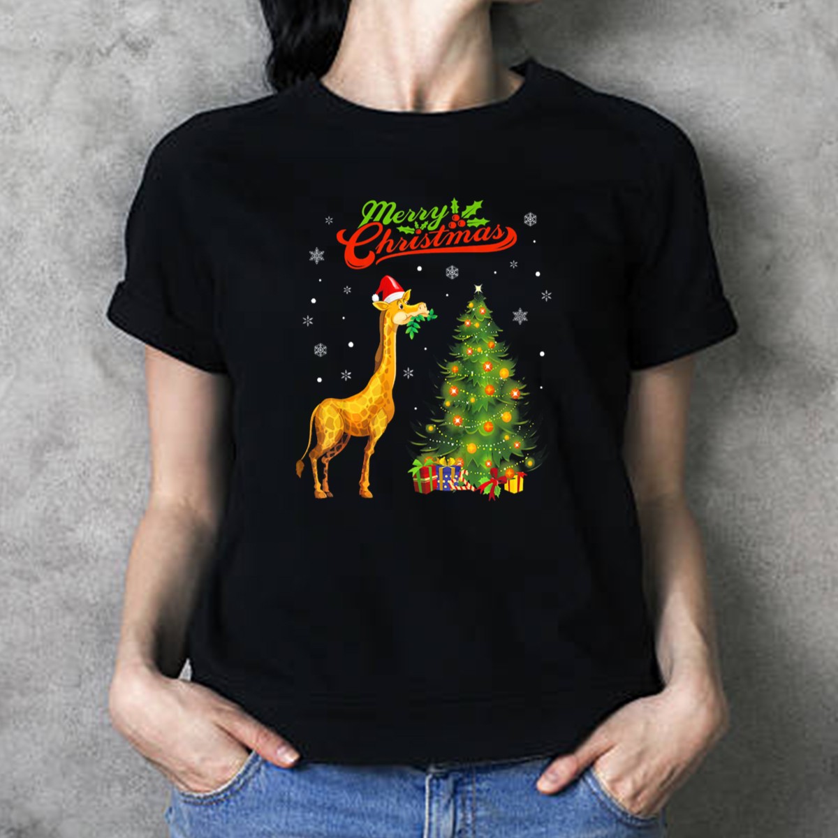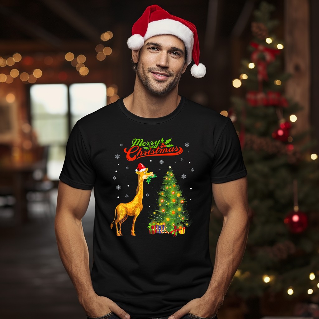 Celebrate the holiday season in style with our Merry Christmas Giraffe With Santa Hat Festive Tree And Snowflakes T-Shirt! This whimsical and cheerful design is perfect for animal lovers and festive spirits alike. Whether you’re attending a holiday party, enjoying a cozy family gathering, or simply spreading cheer in your daily life, this shirt brings joy and warmth to any occasion. Made with love and printed in the USA, it’s a unique addition to your festive wardrobe.