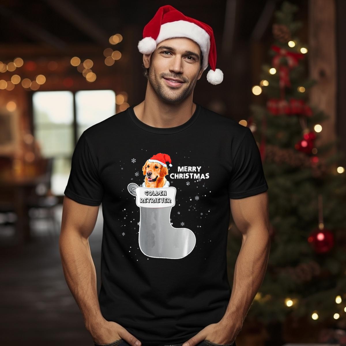 Celebrate the joy of the holiday season with our Merry Christmas Golden Retriever In Santa Hat Stocking T-Shirt! Perfect for dog lovers and festive enthusiasts alike, this fan-made design captures the spirit of Christmas with a playful golden retriever donning a Santa hat. Ideal for casual wear, themed events, or simply spreading holiday cheer during daily outings, this T-shirt combines comfort and style, making it a must-have for all-season festivities.