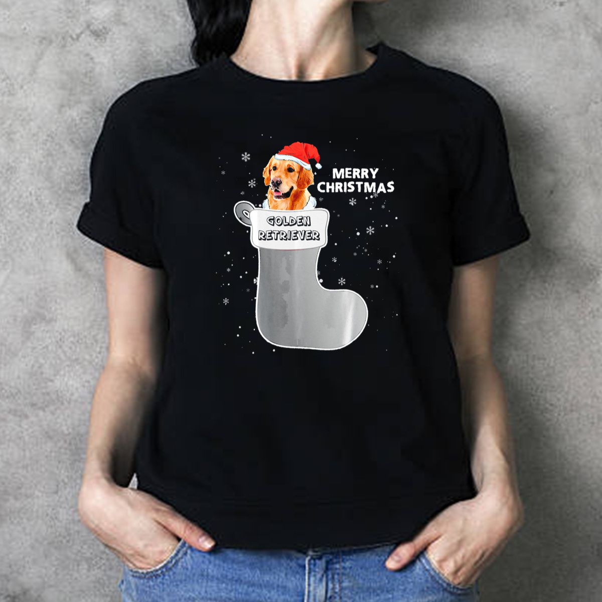 Be the first to review “Merry Christmas Golden Retriever In Santa Hat Stocking T Shirt”