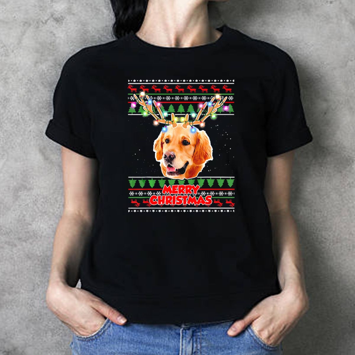 Be the first to review “Merry Christmas Golden Retriever With Antler Lights T Shirt”