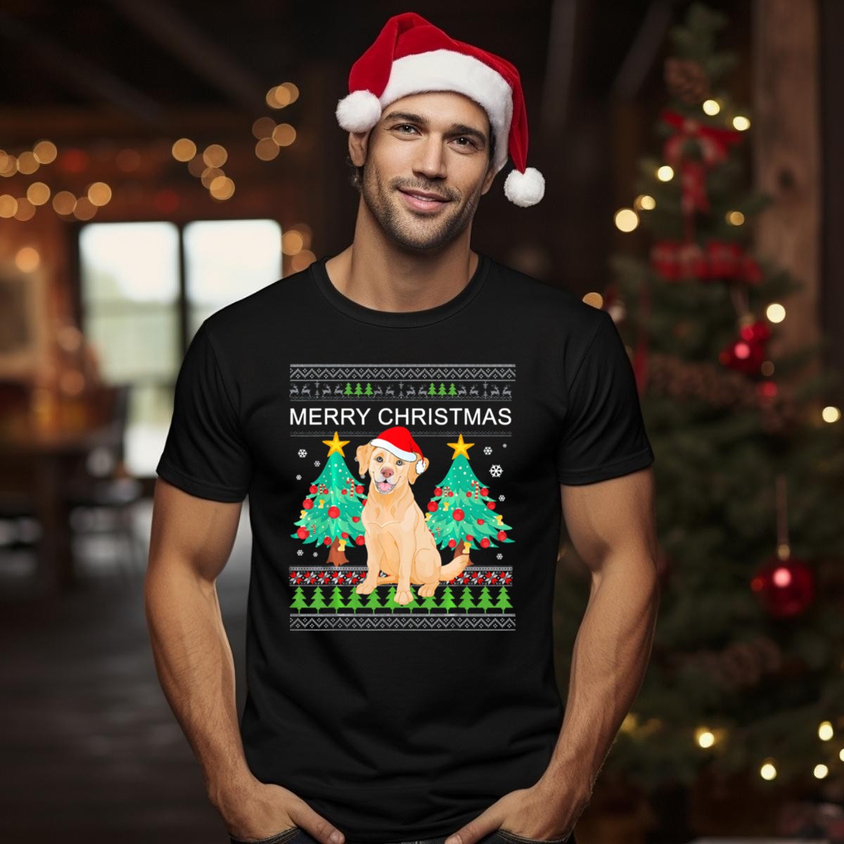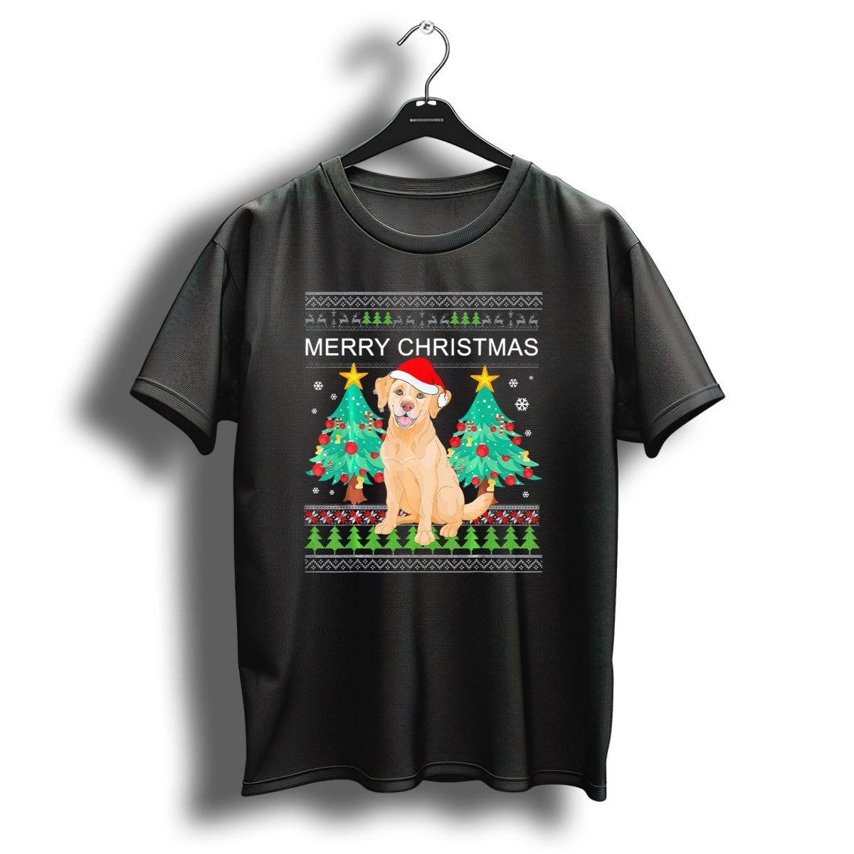 Celebrate the festive season with our Merry Christmas Golden Retriever T-Shirt, perfect for dog lovers and holiday enthusiasts alike! Featuring an adorable golden retriever wearing a Santa hat surrounded by cheerful Christmas trees, this shirt is ideal for casual outings, themed events, or simply spreading holiday cheer. Made for comfort and style, this fan-made design is proudly printed in the USA, making it a unique addition to your holiday wardrobe.