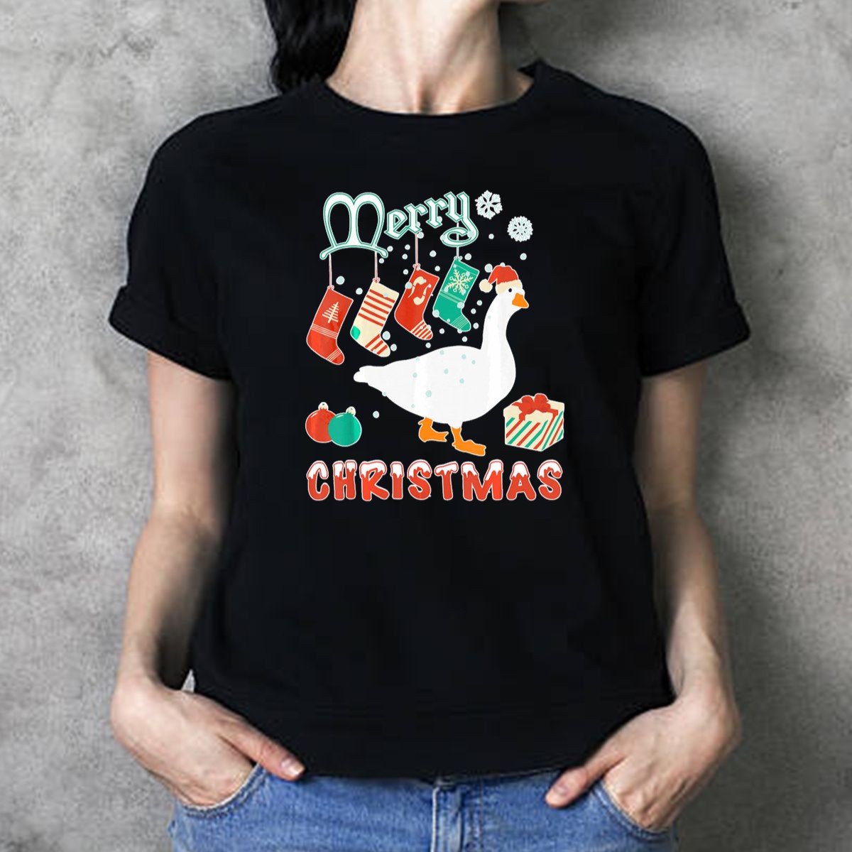 Celebrate the holiday season in style with our Merry Christmas Goose Festive Stockings And Gifts T-Shirt! Perfect for all ages, this fan-made design captures the spirit of Christmas cheer with a whimsical touch. Ideal for casual wear, themed events, or daily outings during the festive season, this shirt is a delightful addition to your wardrobe that brings joy and warmth to every gathering. Made and printed in the USA, it’s a unique piece that stands out in any holiday celebration.