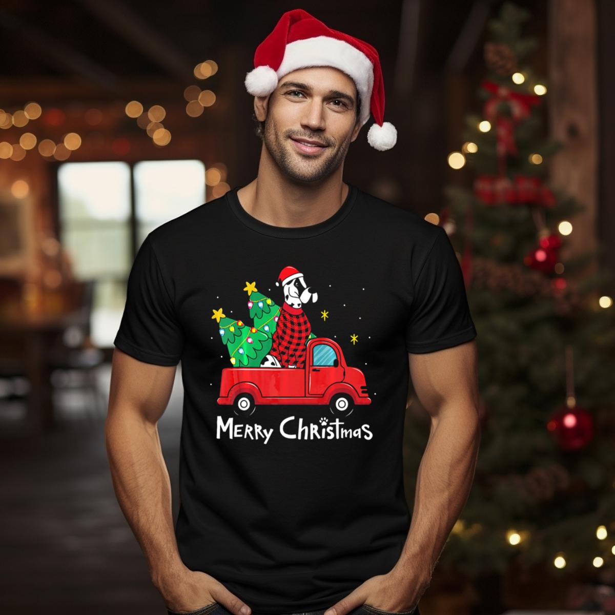 Celebrate the holiday spirit with our Merry Christmas Great Dane Red Truck T-Shirt! Perfect for dog lovers and festive gatherings, this shirt showcases a delightful design featuring a charming Great Dane in a vintage red truck, adorned with Christmas trees. It’s an ideal choice for casual wear, themed events, or simply spreading cheer during the festive season. Made right here in the USA, this fan-made design is sure to make you stand out while keeping you comfortable and stylish throughout the holidays.