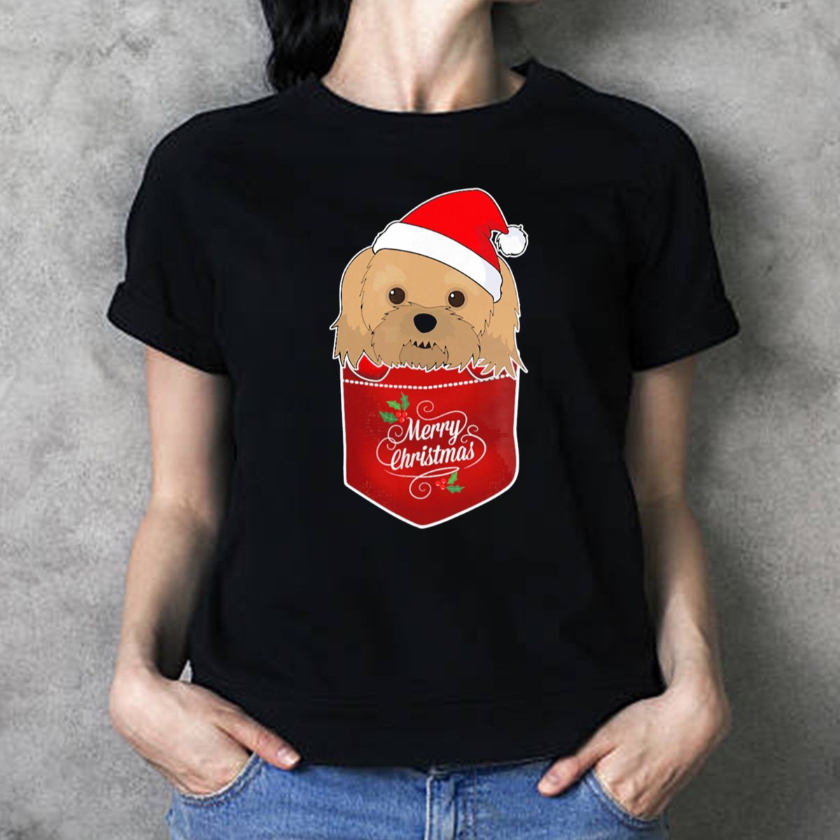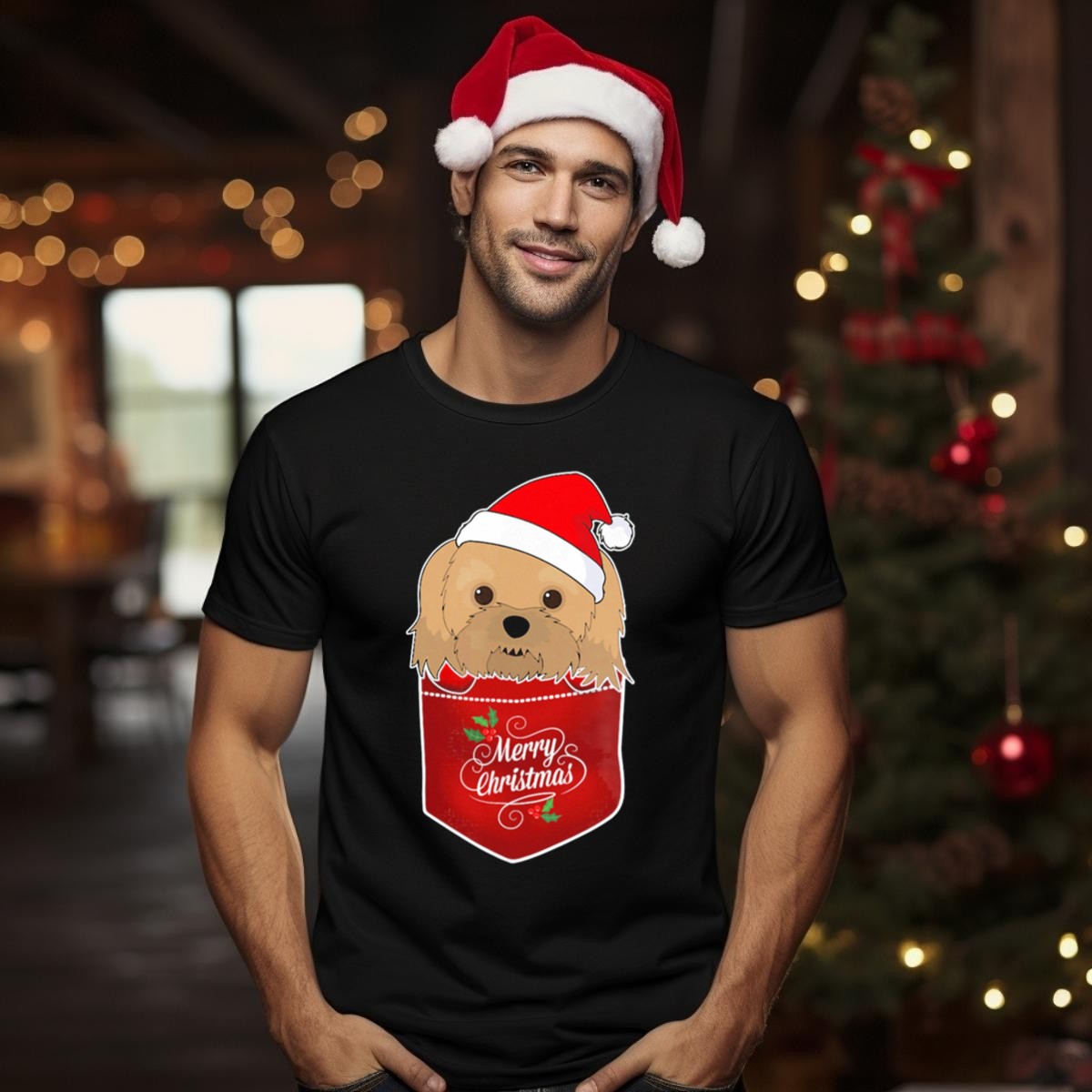 Spread the holiday cheer with our Merry Christmas Havanese With Santa Hat In Pocket T-Shirt! This delightful graphic tee is perfect for dog lovers and festive enthusiasts alike. Featuring an adorable Havanese peeking out from a pocket adorned with a Santa hat, it’s a fun and whimsical addition to your casual wear. Whether you’re celebrating the season at a themed event or just enjoying a cozy day at home, this shirt brings a smile to everyone around. Made with care in the USA, it’s a unique piece that showcases your love for your furry friend during the most wonderful time of the year!