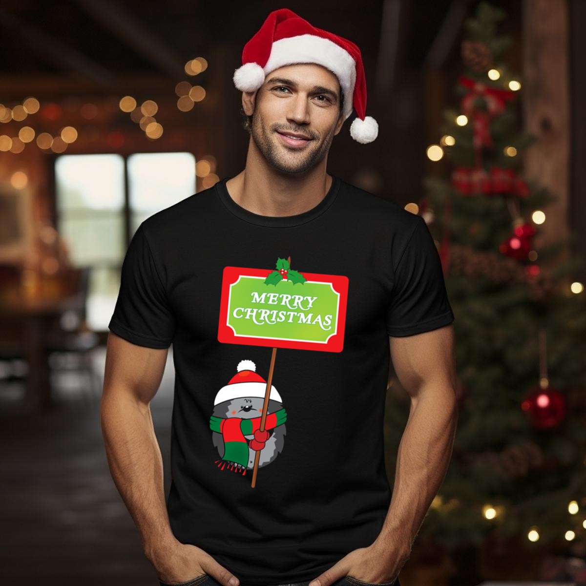 Celebrate the joyous holiday season with our Merry Christmas Hedgehog Festive Sign T-Shirt! Perfect for animal lovers and holiday enthusiasts alike, this charming tee features an adorable hedgehog adorned with a Santa hat and holly, making it an ideal choice for casual wear, themed events, or daily outings. Its fan-made design, printed right here in the USA, adds a unique touch that will surely spread cheer wherever you go.