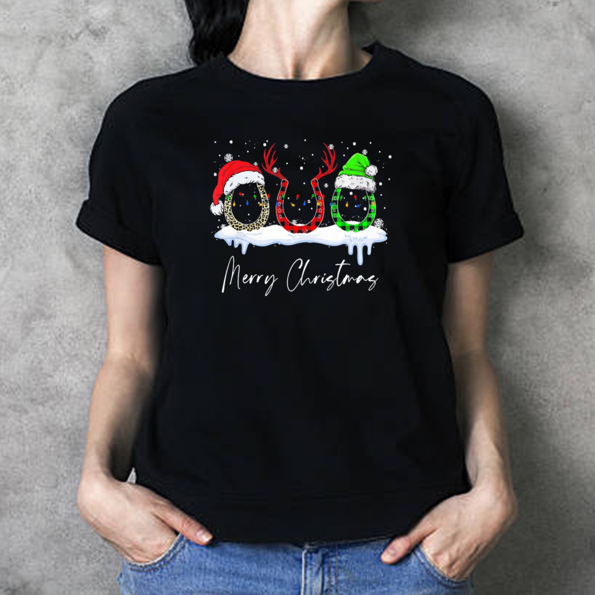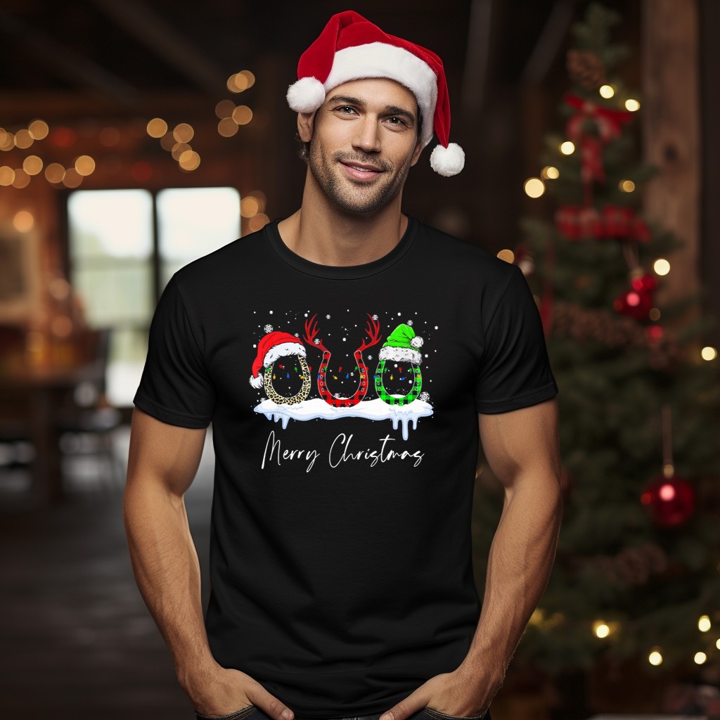 Celebrate the holiday season with our Merry Christmas Horse Hoof Reindeer Santa Hat T-Shirt, perfect for horse lovers and festive enthusiasts alike! This fun and unique design brings a playful touch to your casual wear, making it an ideal choice for themed events, family gatherings, or simply spreading holiday cheer. Crafted with comfort and style in mind, this shirt will quickly become a go-to favorite for all your seasonal celebrations.