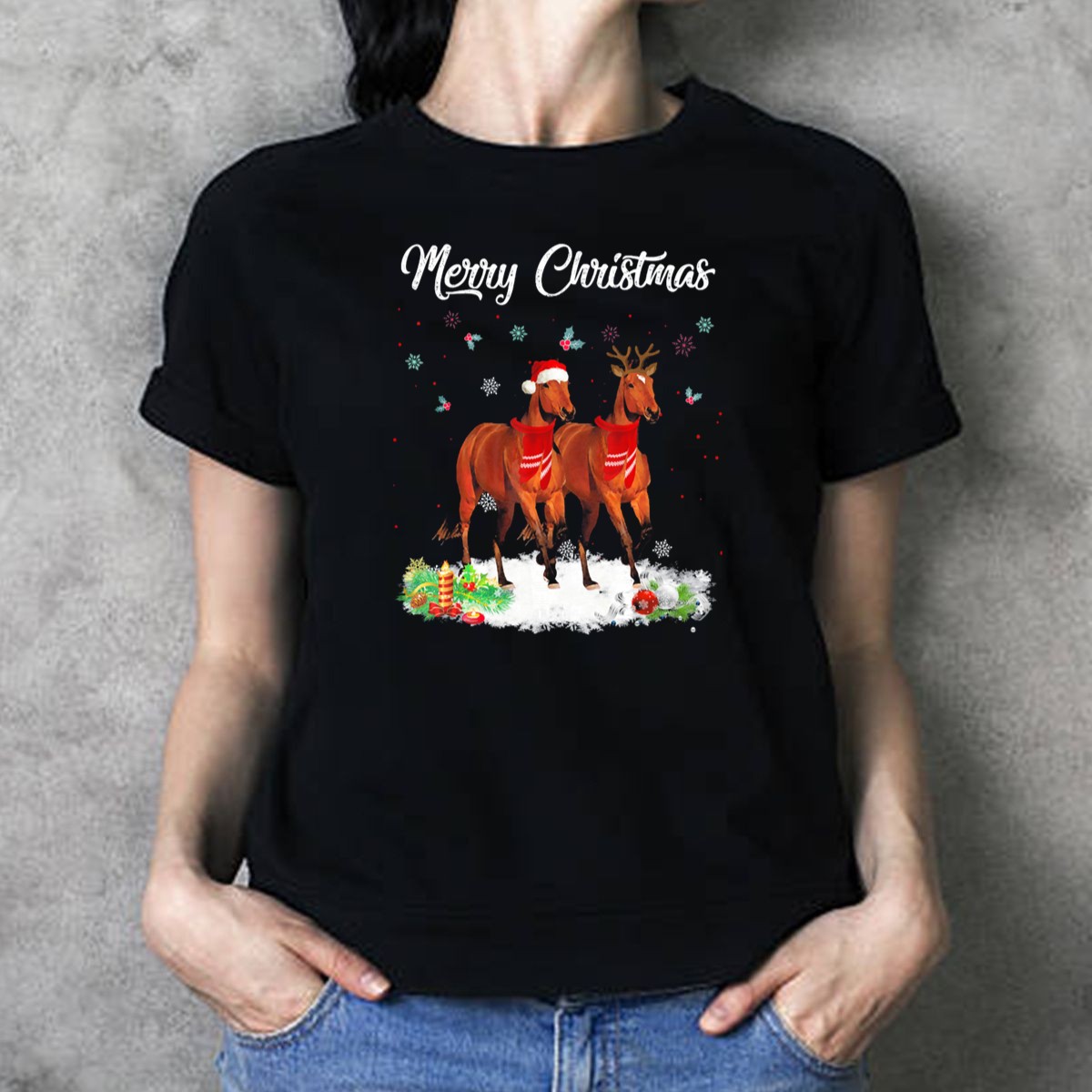 Celebrate the holiday season in style with our Merry Christmas Horse In Santa Hat And Reindeer Antlers T-Shirt! Perfect for horse lovers and festive spirits alike, this fun and whimsical tee brings a dash of cheer to your casual wear, themed events, or daily outings. Show off your unique personality and love for all things equestrian while staying comfortable and stylish throughout the holiday festivities. Crafted in the USA, this fan-made design is sure to be a hit at any gathering!