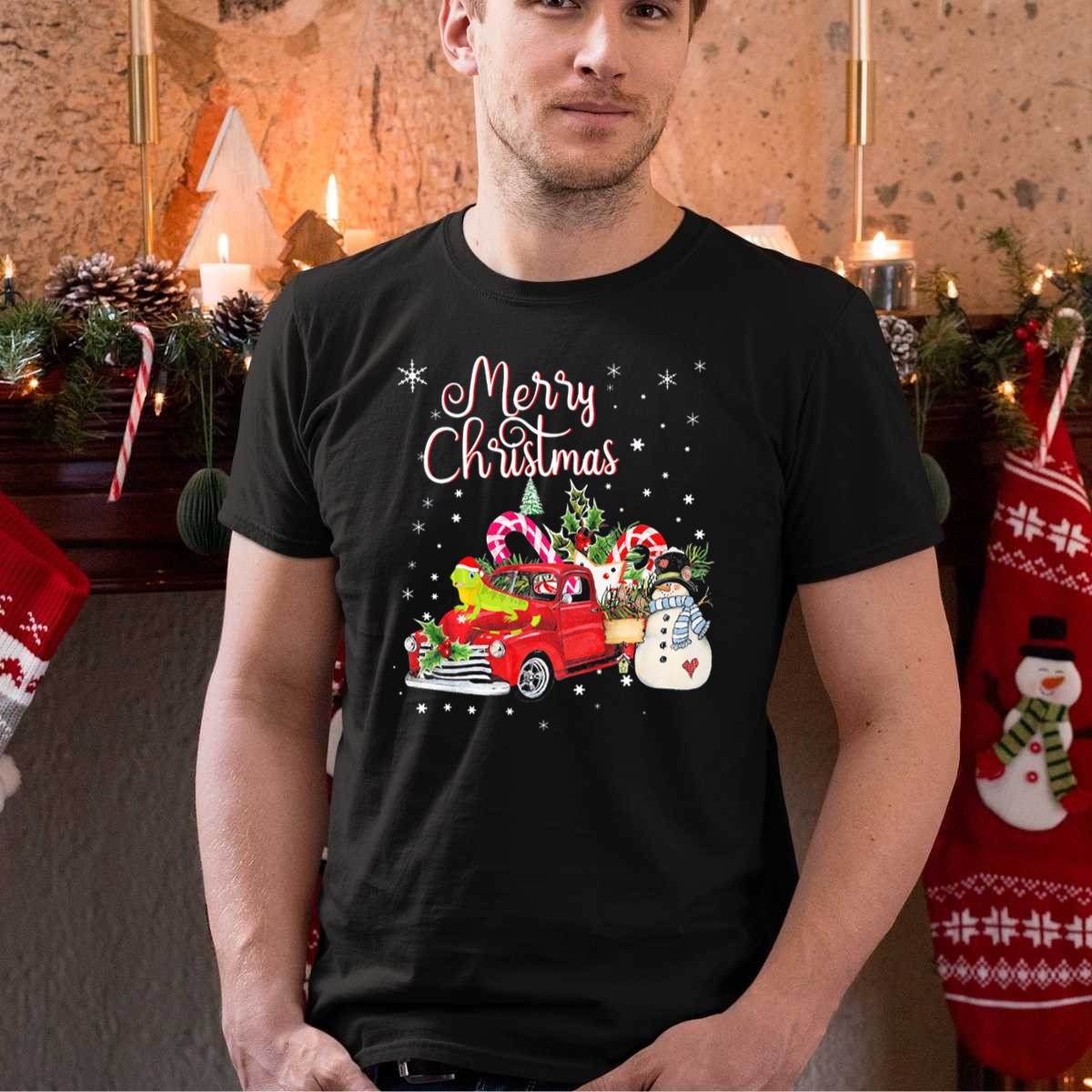 Be the first to review “Merry Christmas Iguana On Red Truck With Candy Canes And Snowman T Shirt”