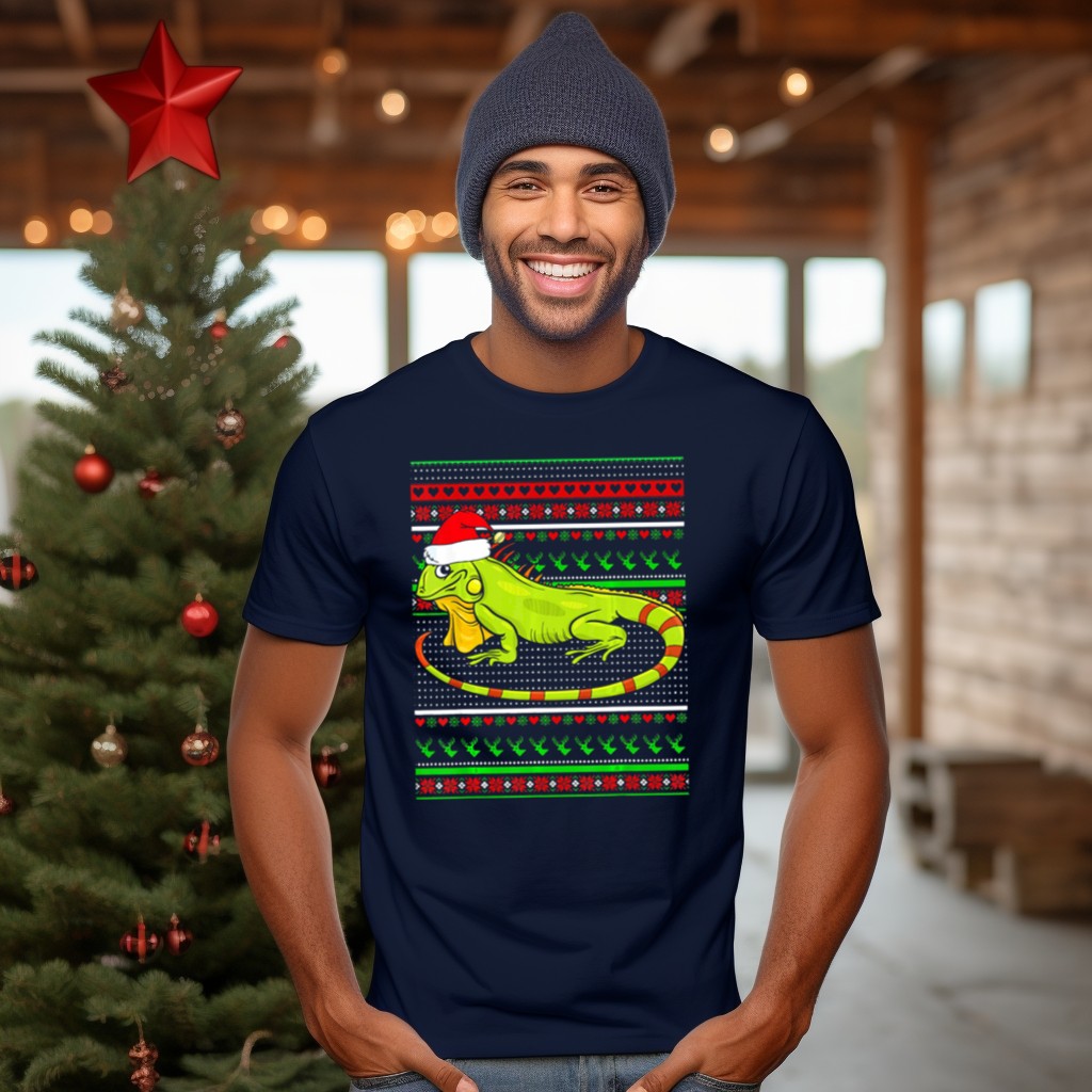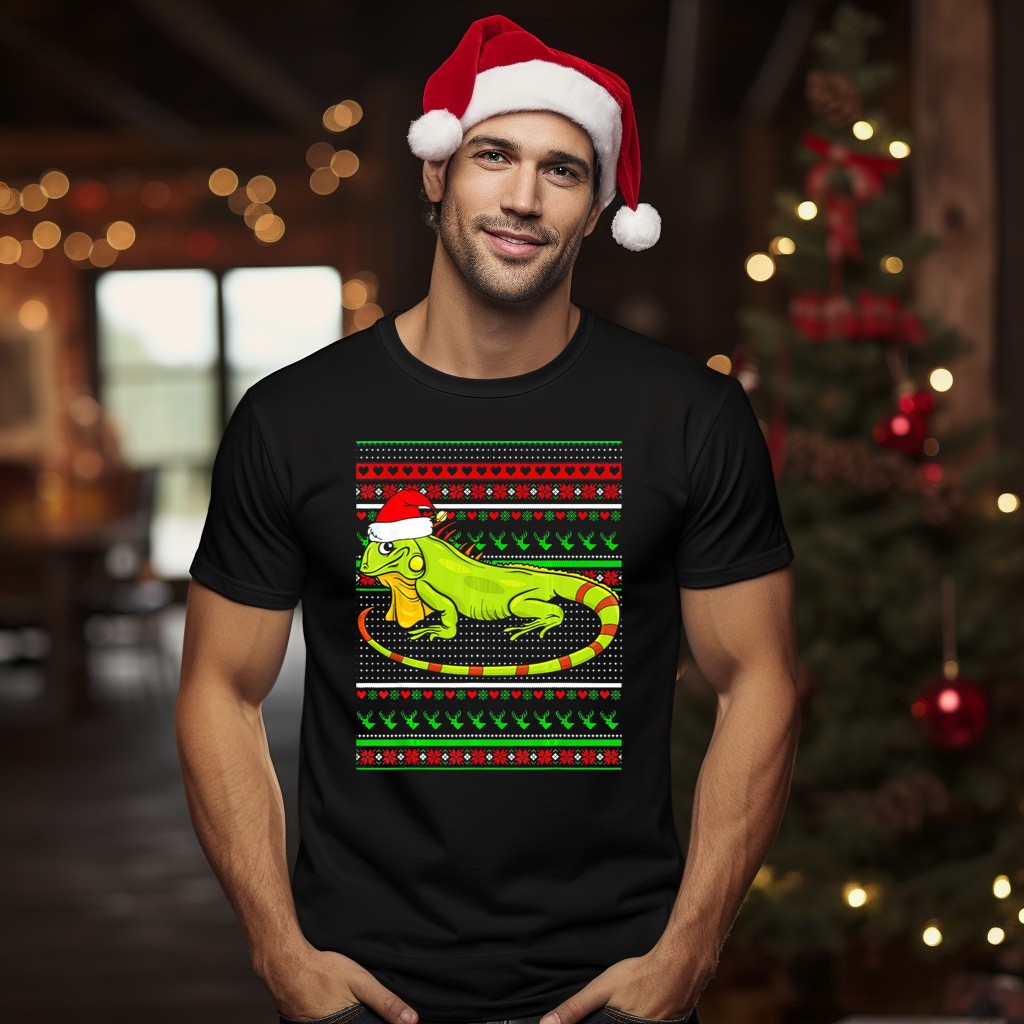 Celebrate the holiday season with our Merry Christmas Iguana Santa Hat Ugly Sweater T-Shirt! Perfect for those who love to bring a bit of fun and flair to their festive wardrobe, this shirt is ideal for casual gatherings, themed events, or just spreading cheer in your daily wear. With a playful design featuring a festive iguana sporting a Santa hat, this t-shirt stands out as a unique addition to your collection, making it a great choice for friends and family who appreciate whimsical holiday spirit!