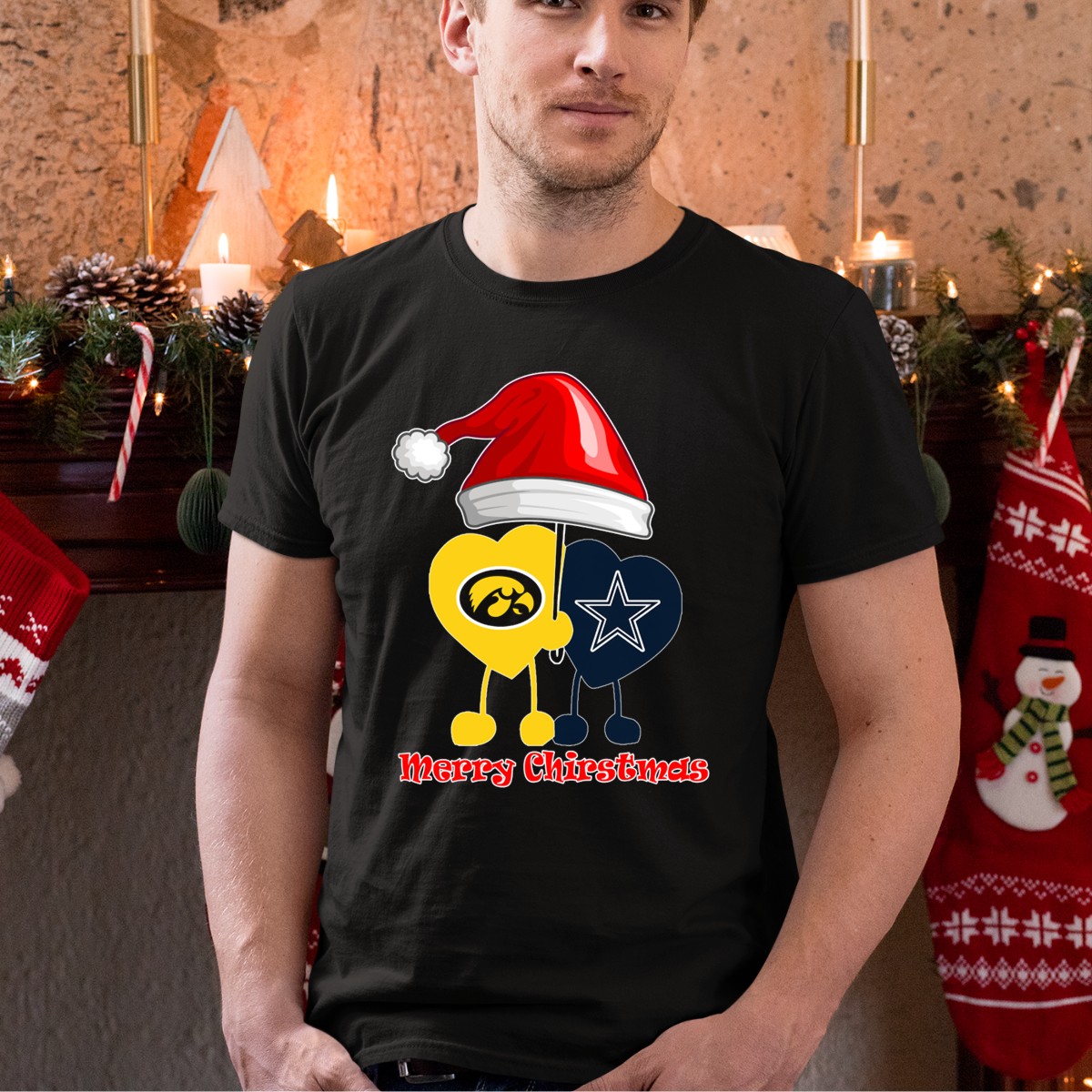 Celebrate the holiday season in style with our Merry Christmas Iowa Hawkeyes Dallas Cowboys Santa Hat T-Shirt! Perfect for passionate fans and festive gatherings, this shirt combines your love for sports with a cheerful holiday spirit. Whether you’re attending a game, hosting a themed event, or just enjoying daily wear, this unique fan-made design will have you spreading joy and team pride wherever you go. Printed in the USA, it’s the perfect blend of comfort and festive cheer!