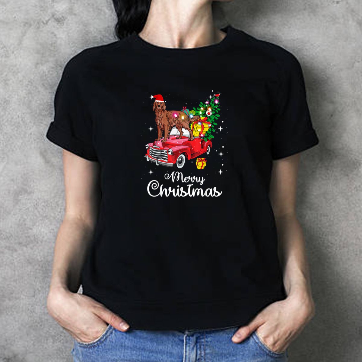 Celebrate the holiday season in style with our Merry Christmas Irish Setter On Red Truck With Presents And Tree T-Shirt! This festive design is perfect for dog lovers and holiday enthusiasts alike, making it an ideal choice for casual gatherings, themed events, or simply spreading some cheer during daily wear. With its fan-made artwork printed in the USA, this shirt combines comfort and creativity, ensuring you stand out while enjoying the festivities.