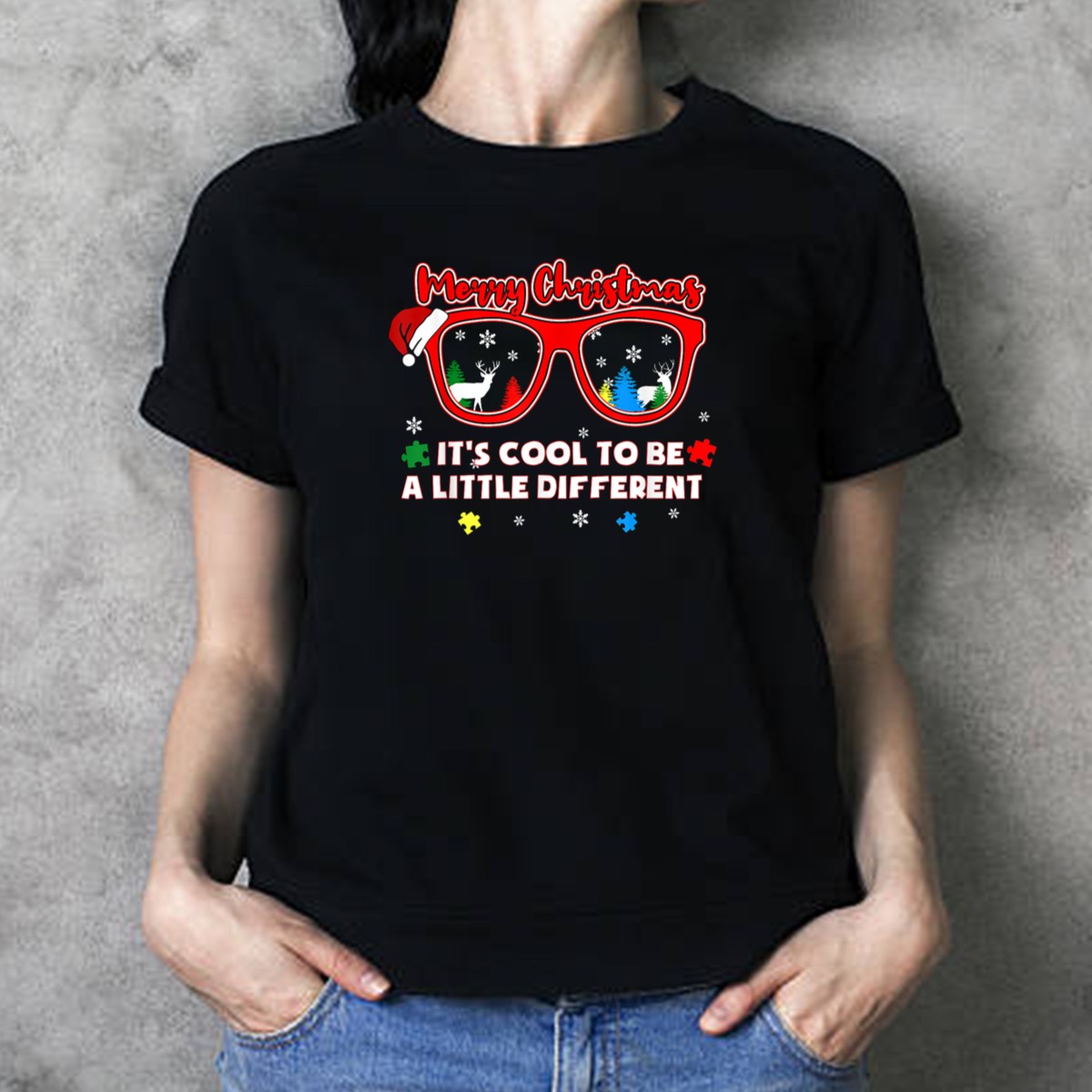 Celebrate the holiday spirit with our “Merry Christmas It’s Cool To Be A Little Different” Santa Sunglasses Puzzle T-Shirt! This festive tee is perfect for those who embrace their uniqueness and want to spread joy during the holiday season. Whether you’re attending a casual gathering, themed events, or simply enjoying daily wear, this fan-made design is sure to turn heads and bring smiles. Printed in the USA, it’s a delightful addition to your all-season wardrobe.