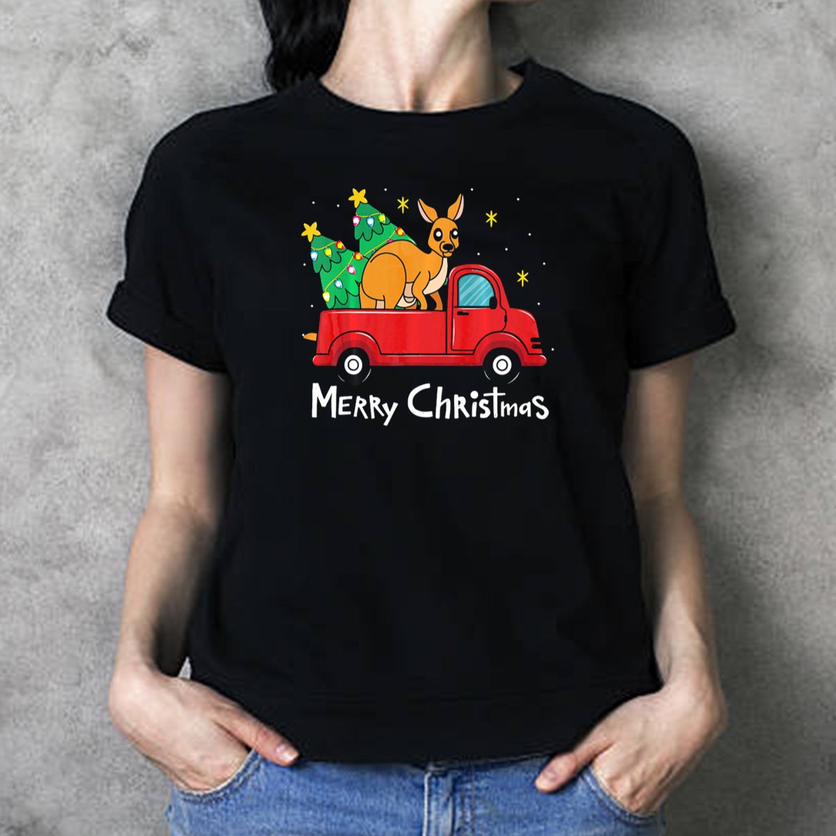 Merry Christmas Kangaroo Ornament Truck With Tree T Shirt