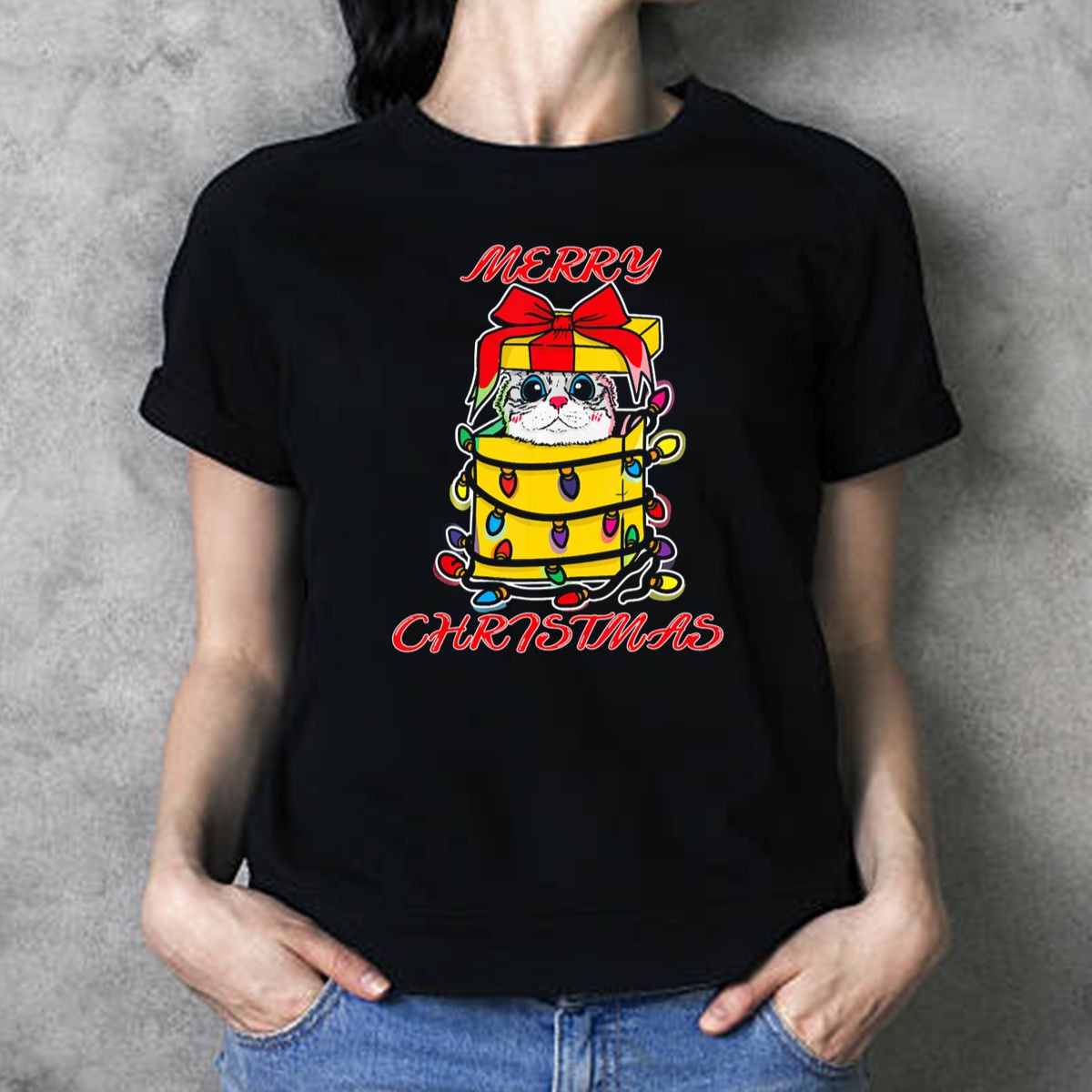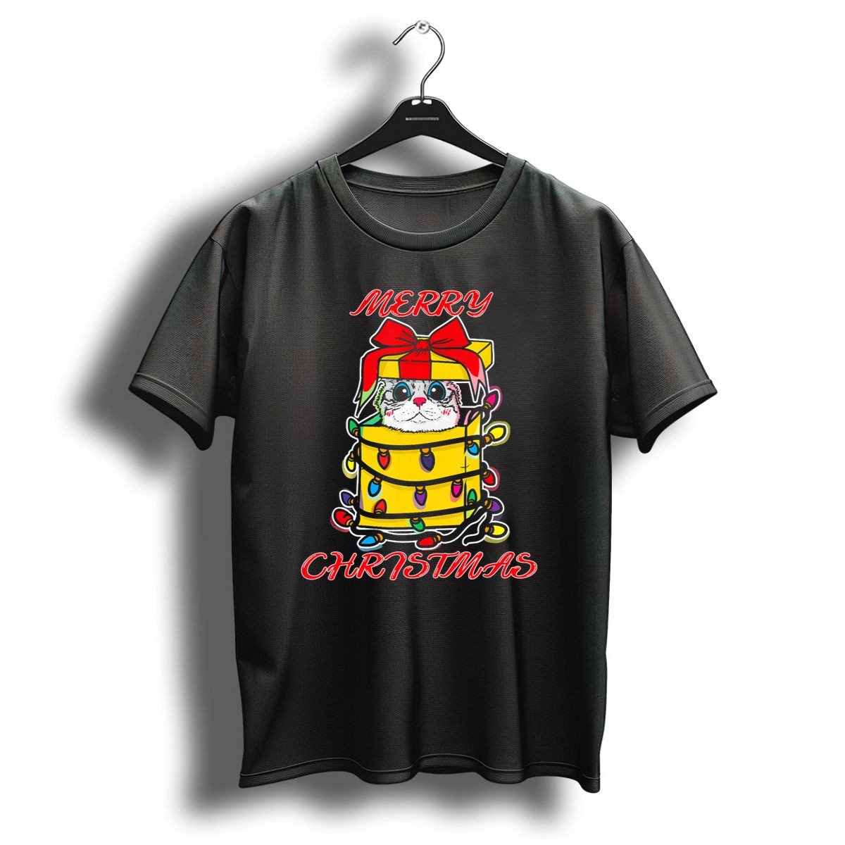 Celebrate the festive spirit with our Merry Christmas Kitten Wrapped In Lights Present Box T-Shirt! This charming and playful design is perfect for cat lovers and anyone looking to spread holiday cheer. Whether you’re attending a holiday party, enjoying a cozy family gathering, or just running errands, this shirt will keep you feeling merry and bright. Crafted for comfort and style, it’s a delightful addition to your casual wear collection that showcases a fan-made design printed proudly in the USA.