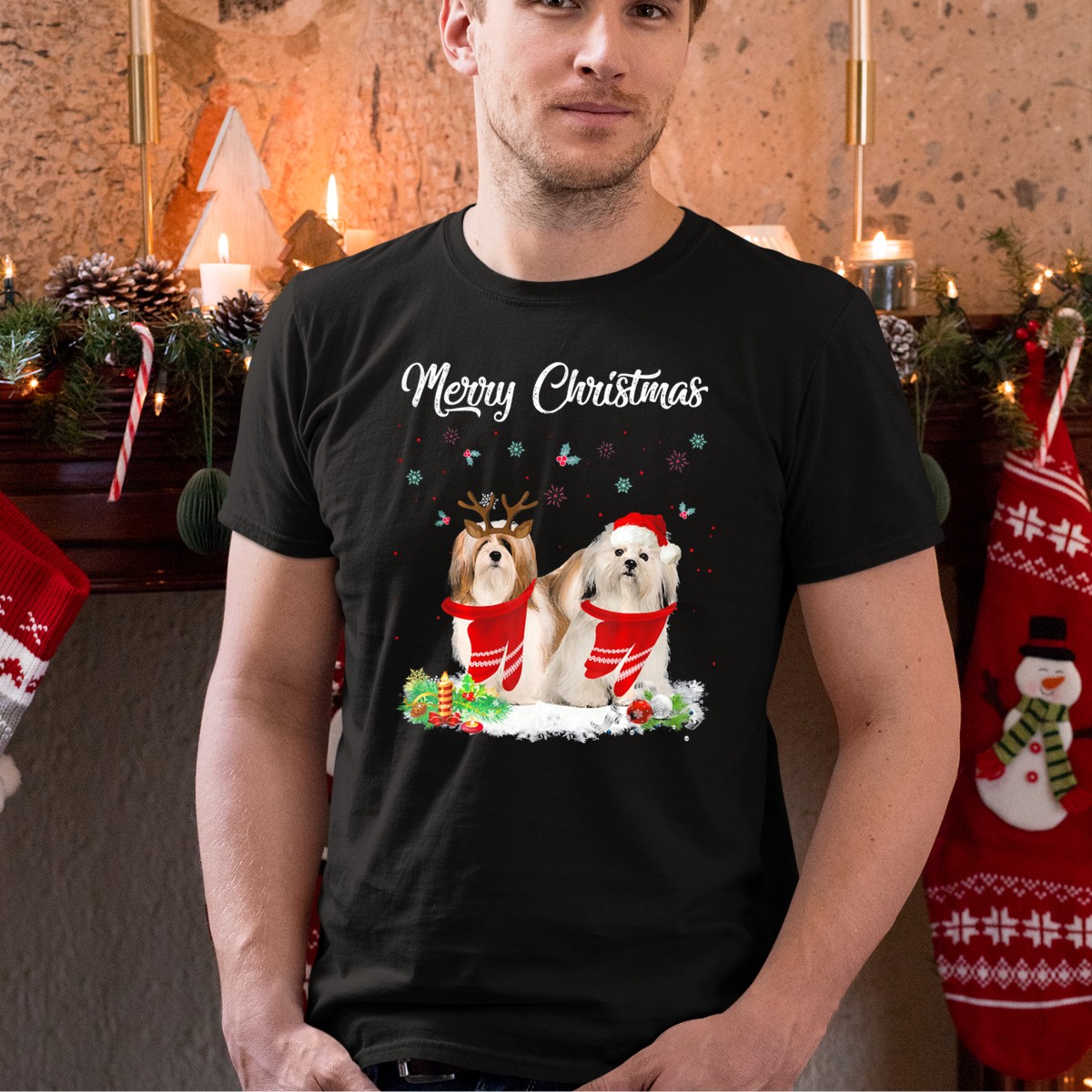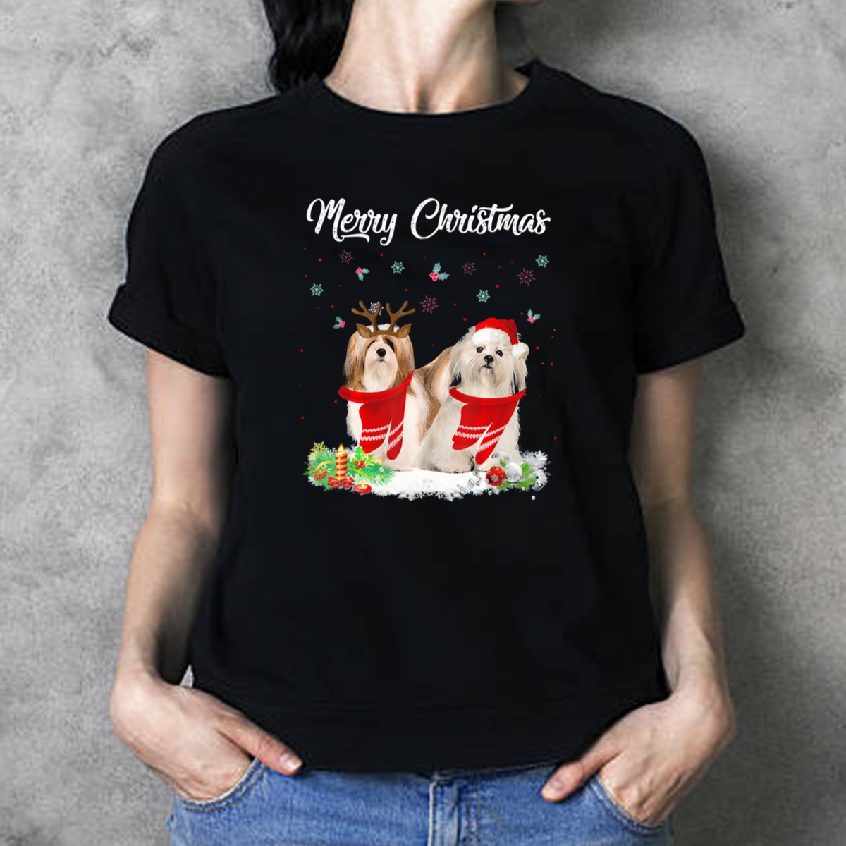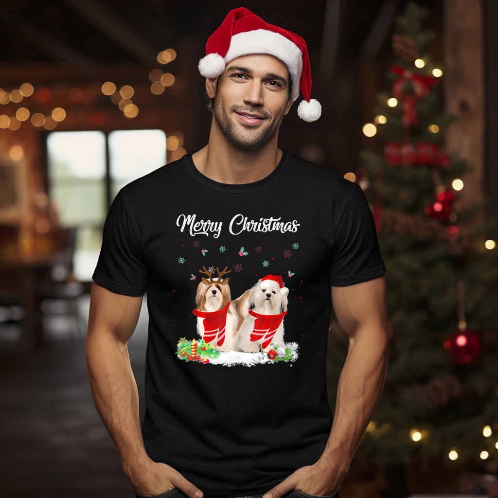 Celebrate the festive season in style with our Merry Christmas Lhasa Apso Dogs With Santa Hats And Antlers T-Shirt! Perfect for dog lovers and Lhasa Apso enthusiasts, this charming design brings joy and whimsy to any casual outing or themed event. Made for comfort and durability, this shirt is not only a delightful addition to your holiday wardrobe but also a conversation starter at gatherings with friends and family. Spread the holiday cheer with this fan-made design, proudly printed in the USA!