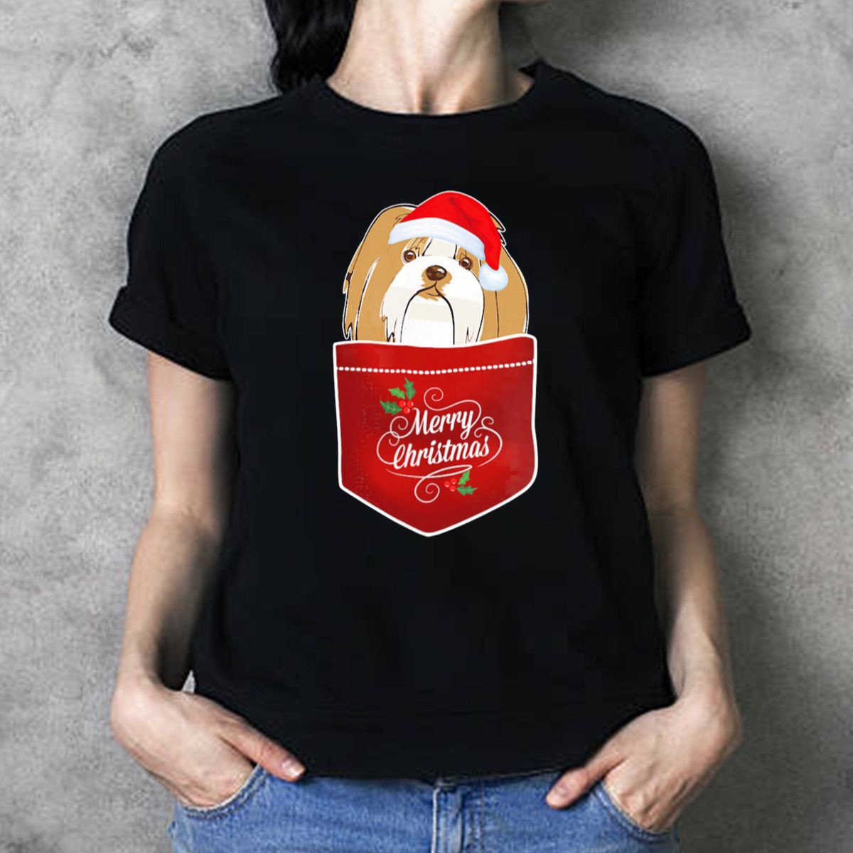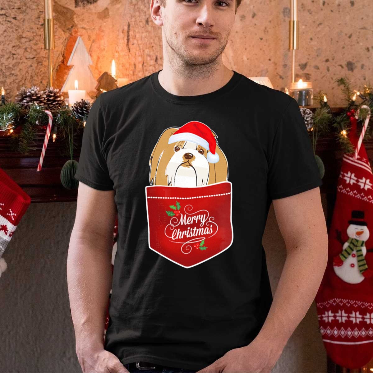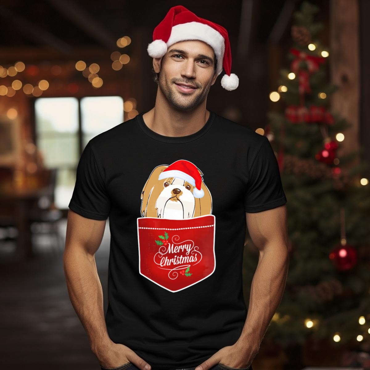 Be the first to review “Merry Christmas Lhasa Apso In Santa Hat Pocket T Shirt”