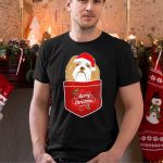 Merry Christmas Lhasa Apso In Santa Hat Pocket T Shirt