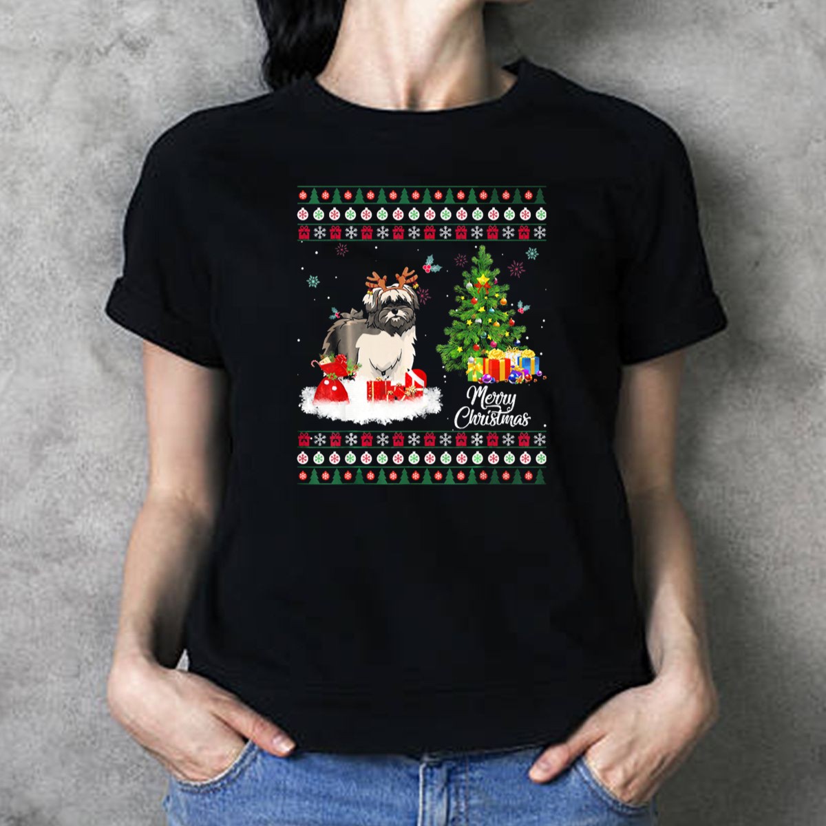 Be the first to review “Merry Christmas Lhasa Apso Reindeer Presents Tree Snowflakes T Shirt”